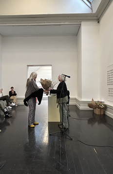 oppleve hvordan Inga Gerner Nielsen, som ung kvinnelig performancekunstner og sosiolog, valgte å bruke skulpturene, den stemningsskapende musikken og Marie Villads dikt. - At hun inviterte til en intim event; som gjennom 2-3timer fikk folk til å bevege seg videre fra det sted, hvor høflighet ofte stopper virkelige samtaler mellom mennesker som ikke har møttes tidligere. Jeg deltok i en gruppe hvor to kvinner i 20-års alderen, uten erfaring i å oppsøke kunst og kultur begivenheter, valgte å oppsøke denne publikums deltagende seansen, istedet for å «ta i byen». Det ble til sterke, personlige beretninger og assosiasjoner rundt både kjærlighet, fødsel, død og alder".