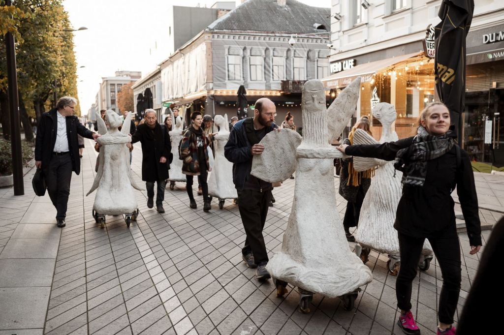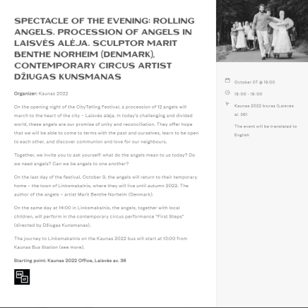Next week we are opening a CityTelling Festival, and angels will be part of two performances. One of them will be at the opening day of the festival (7th of October), they will form a procession on the main street in Kaunas Laisvės alvenue. On the 9th of October they will be part of the performance in Linksmakalnis: https://istorijufestivalis.eu/en/#programme