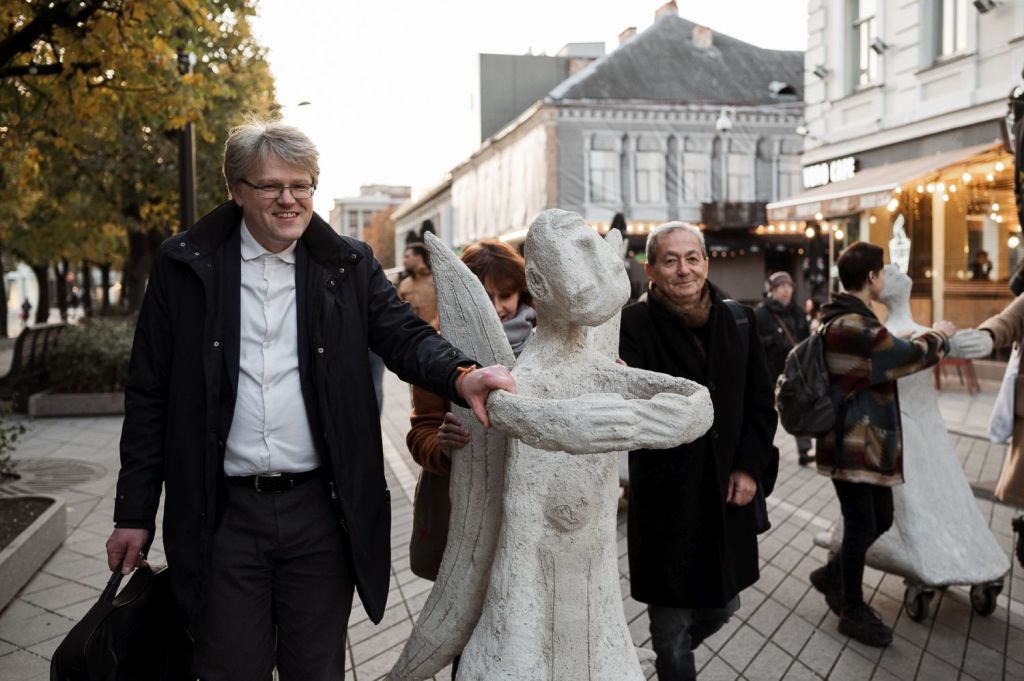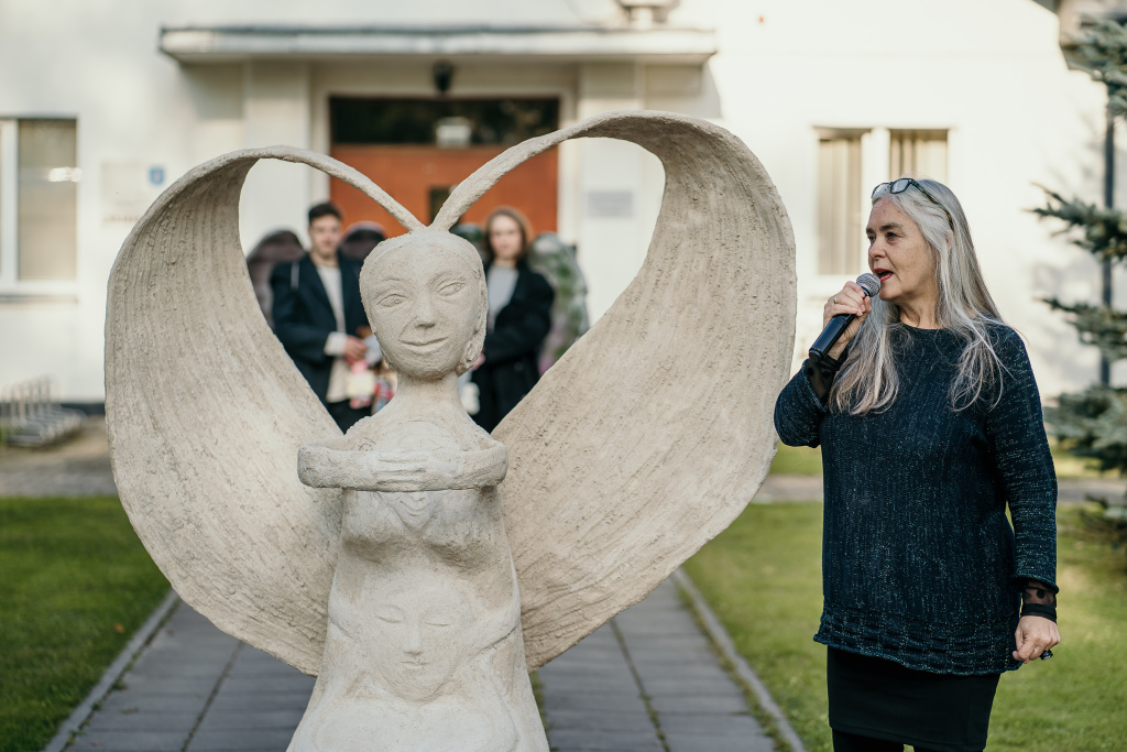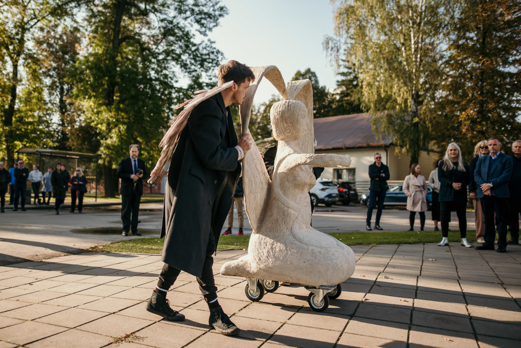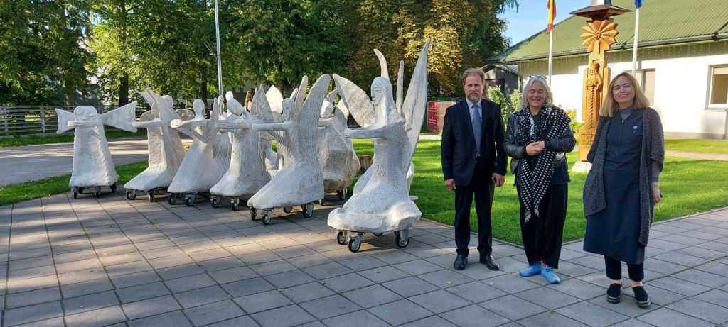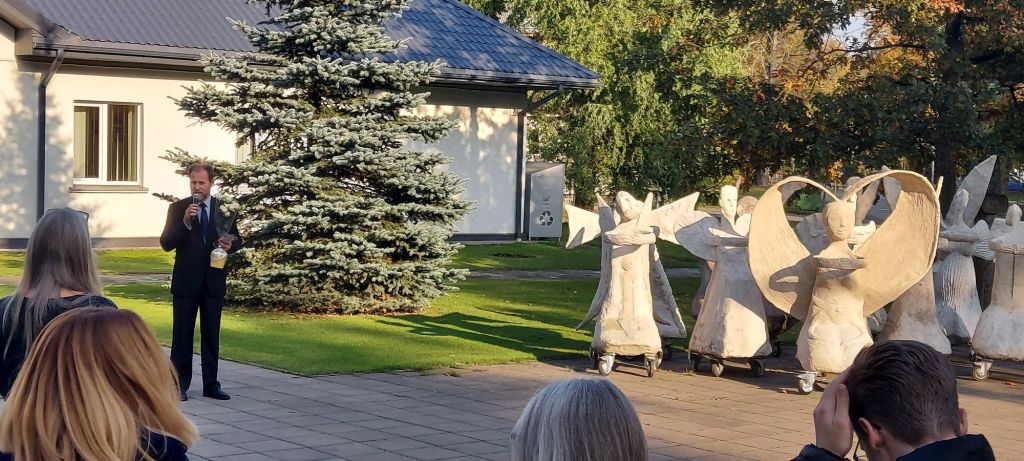 Overrækkelse af skulpturen Smilets Engel, lavet til englemuseet i Linksmakalnis 1/10-22
