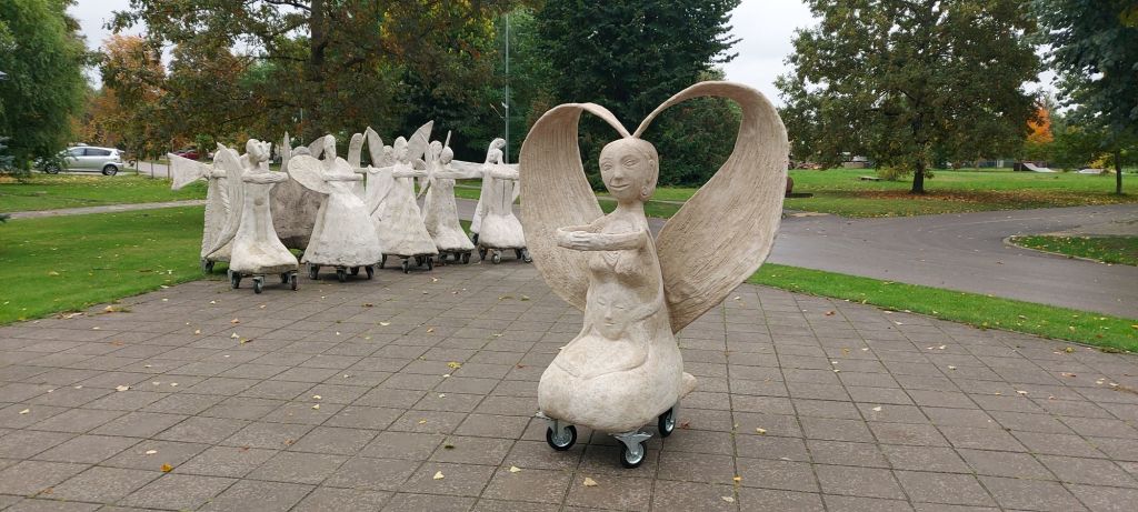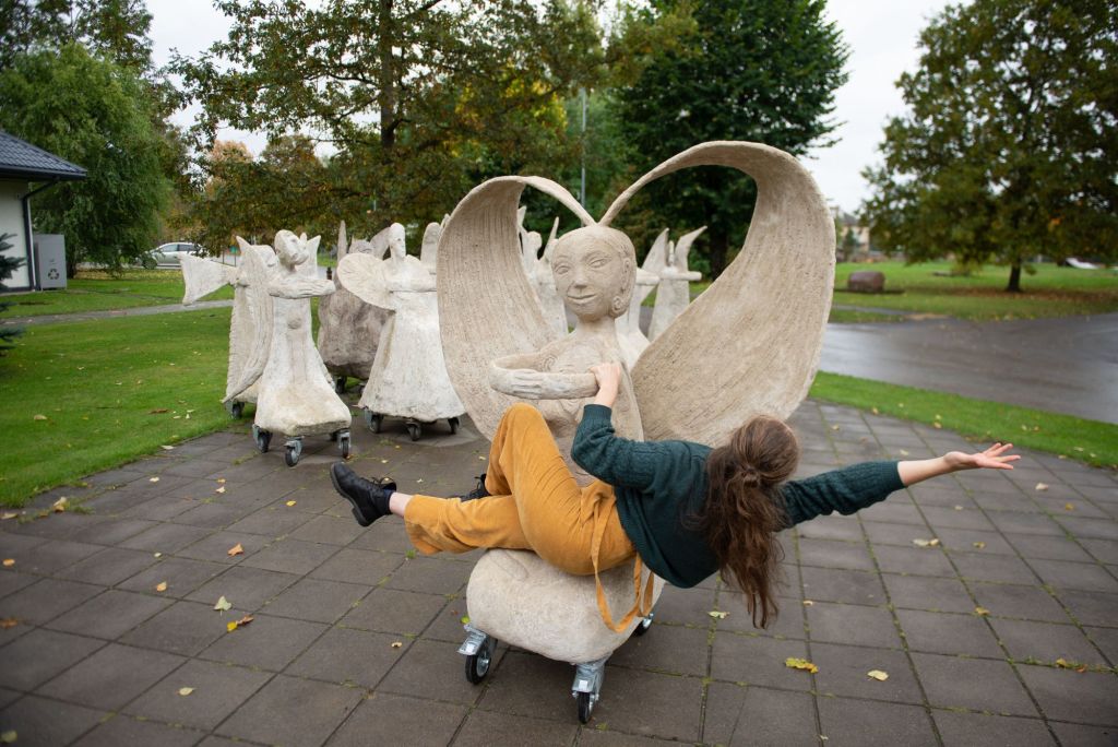 Ud over at bringe flokken af Rullende Engle, blev jeg også bedt om at skabe en engel specifikt til den lille by Linksmakalnis, som skulle blive der permanent.