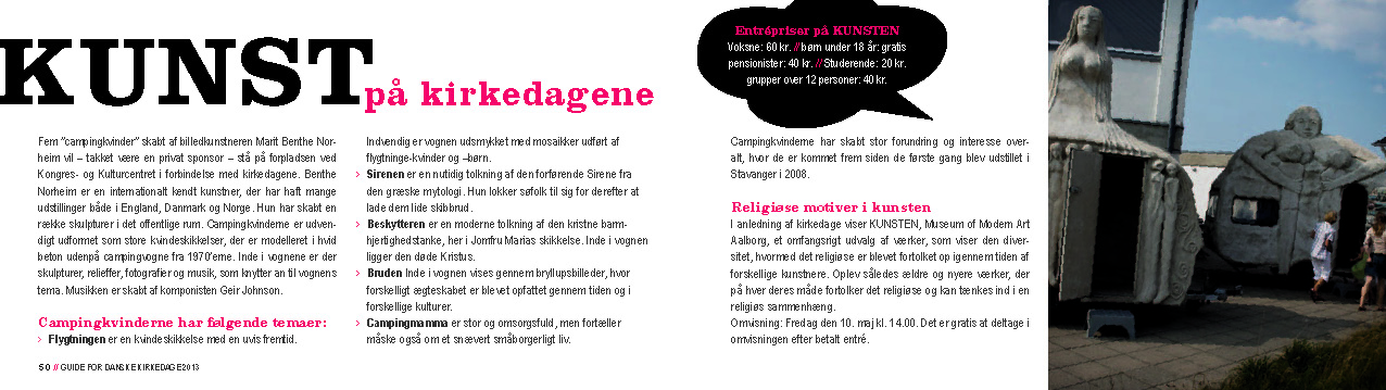 Campingturen blev en smagsprøve på hvad disse skulpturer kan, ved at bringe kunsten ud til steder og folk som ikke vanligvis forholder sig til kunst. Den gruppe af mennesker som var med på rejsen indeholdt også flere af de bedste kulturformidlere vi har i Danmark og Norge. bl.a. den danske tidligere kulturminister Elsebeth Gerner Nielsen, som nu er leder af Designskolen, Else Marie Bukdahl, som er ”the grand old lady” i Dansk kunstliv; Dr. phil og tidl. rektor i 20 år, for det Kongelige danske Kunstakademi og forfatter for en uendelig række af kunstbøger og artikler etc. Norske Jorunn Veiteberg også Dr. phil. og professor på Kunsthøjskolen i Bergen, bosat i København, var også med.