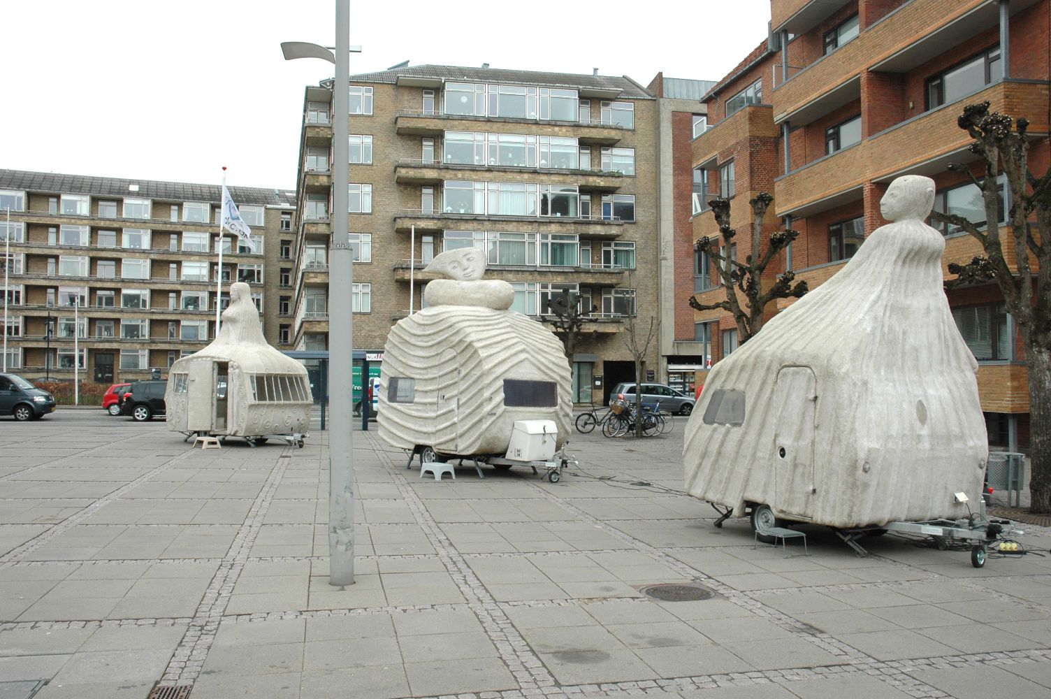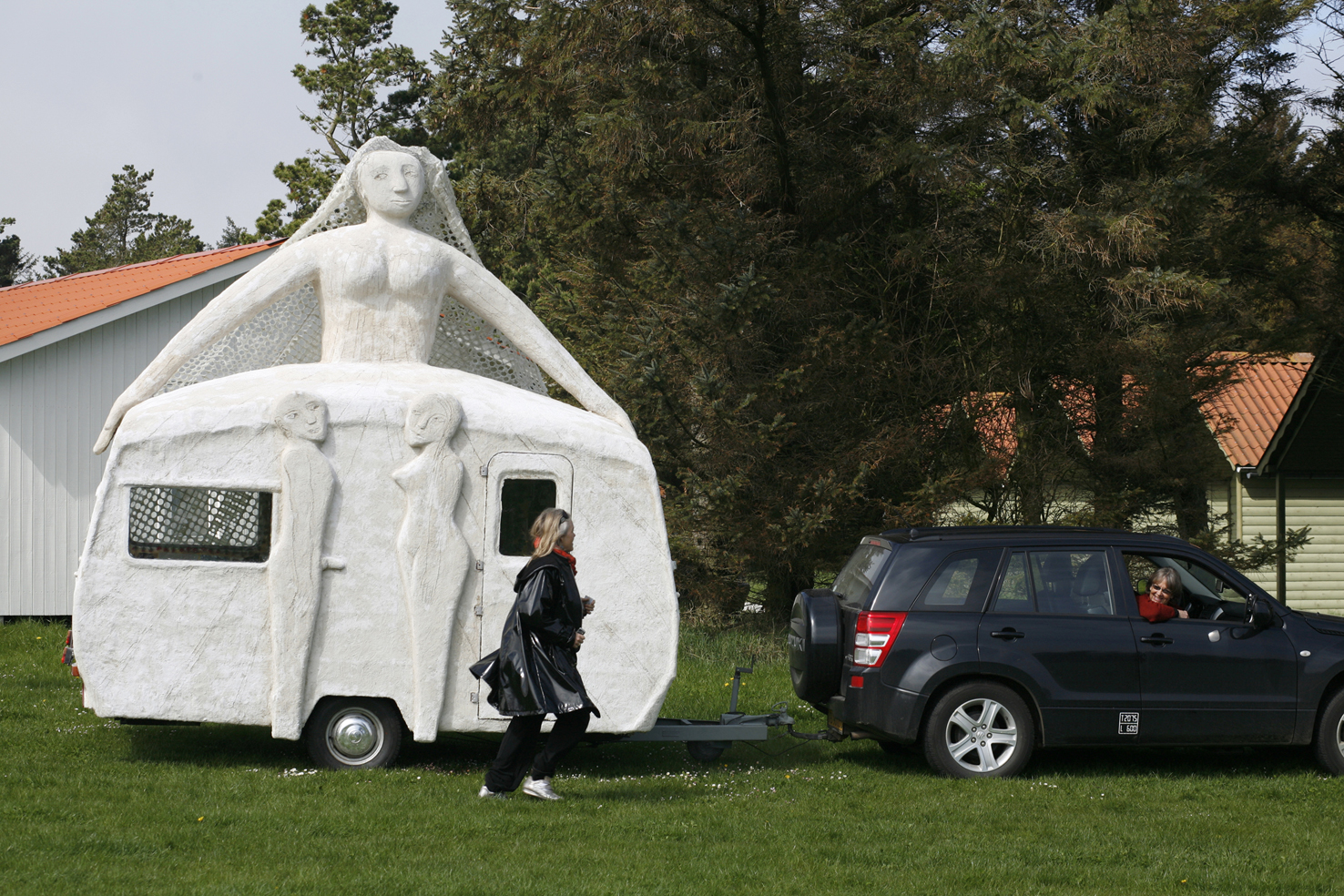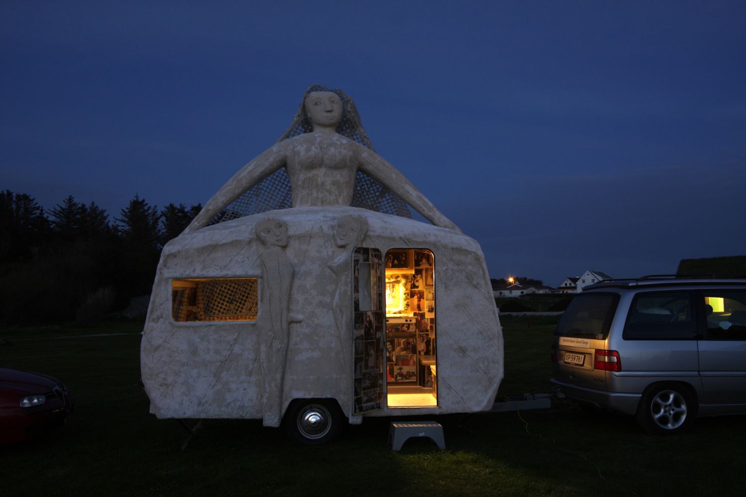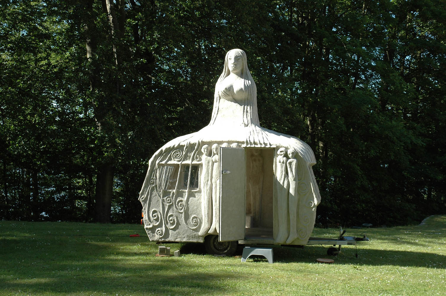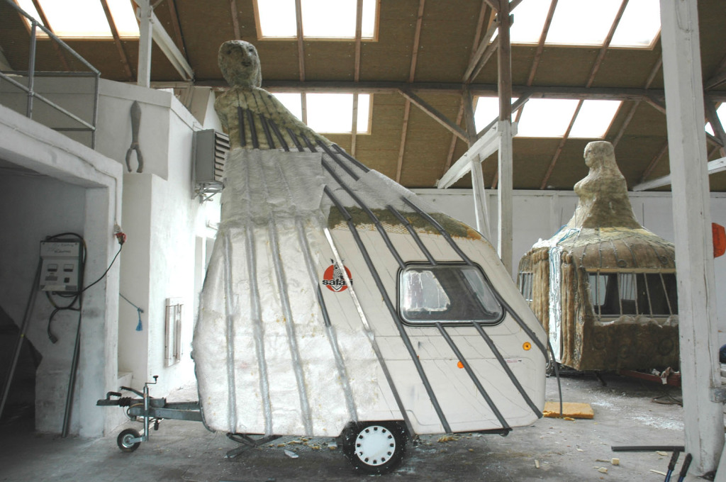 Den bærende idé og samtidigt den indre armering til opbygning af betonskulpturerne, er funktionelle campingvogne, fra tresserne og halvfjerdserne. De indre rum er bearbejdet på forskellige måder, både visuelt og med musik: Flygtningekvinden er fyldt med porcelænsrelief om det at flygte, lavet af børn og flygtningekvinder i samarbejde. Bruden og Campingmama er tapetseret med indsamlede fotos, fra hhv. bryllup og camping. Jomfru Maria optræder som beskytter og bærer af smerte, mens Sirenen er den ambivalente frister og forfører.