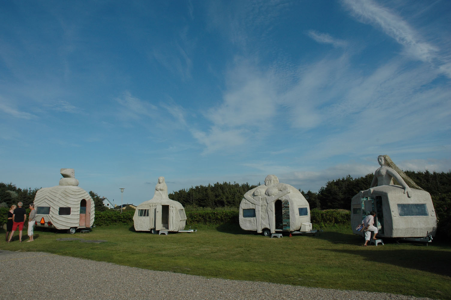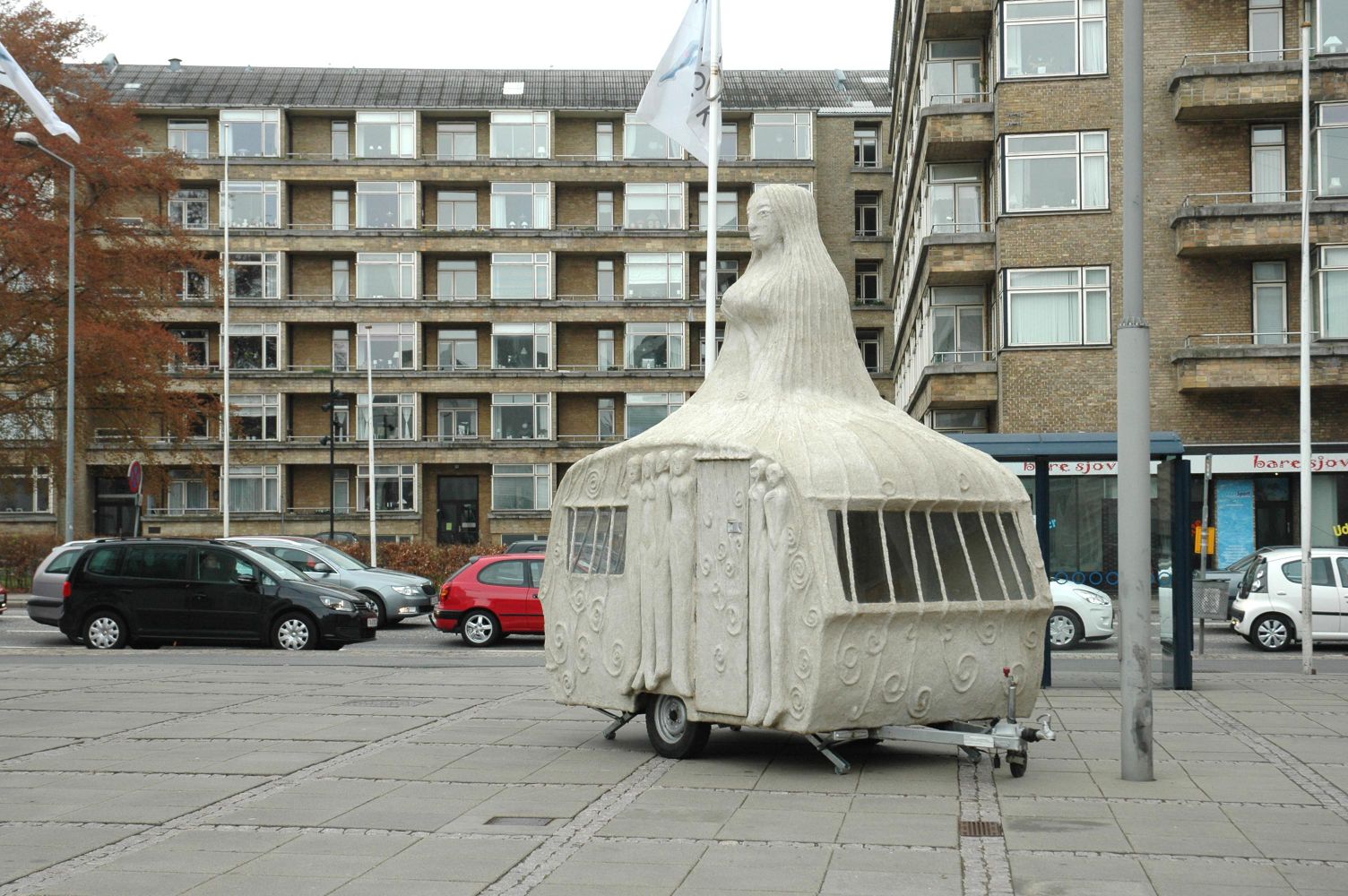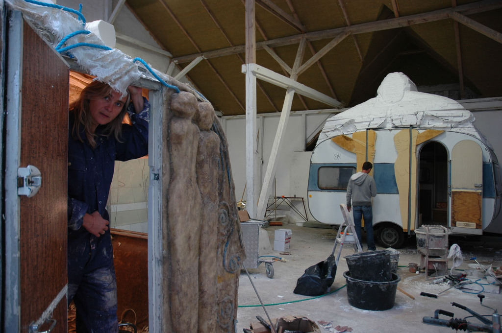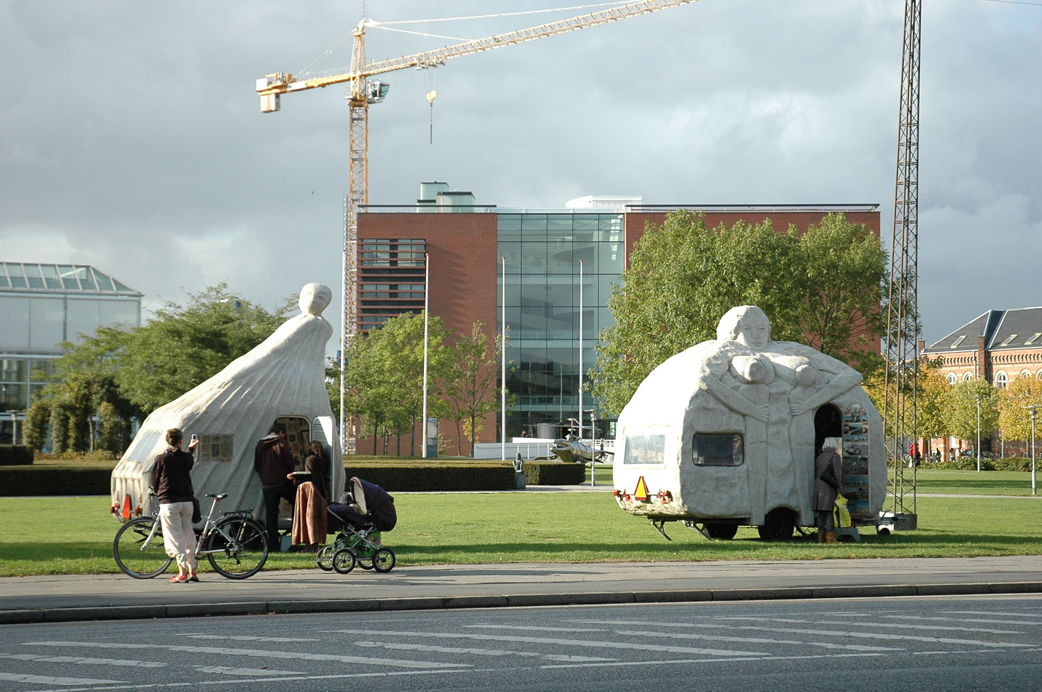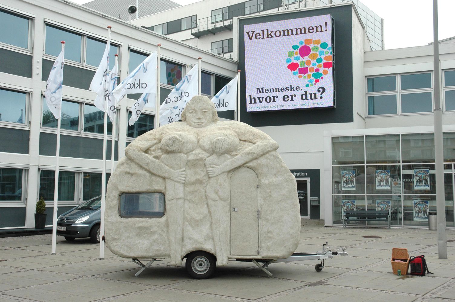 Den bærende idé og samtidigt den indre armering til opbygning af betonskulpturerne, er funktionelle campingvogne, fra tresserne og halvfjerdserne. De indre rum er bearbejdet på forskellige måder, både visuelt og med musik: Flygtningekvinden er fyldt med porcelænsrelief om det at flygte, lavet af børn og flygtningekvinder i samarbejde. Bruden og Campingmama er tapetseret med indsamlede fotos, fra hhv. bryllup og camping. Jomfru Maria optræder som beskytter og bærer af smerte, mens Sirenen er den ambivalente frister og forfører.