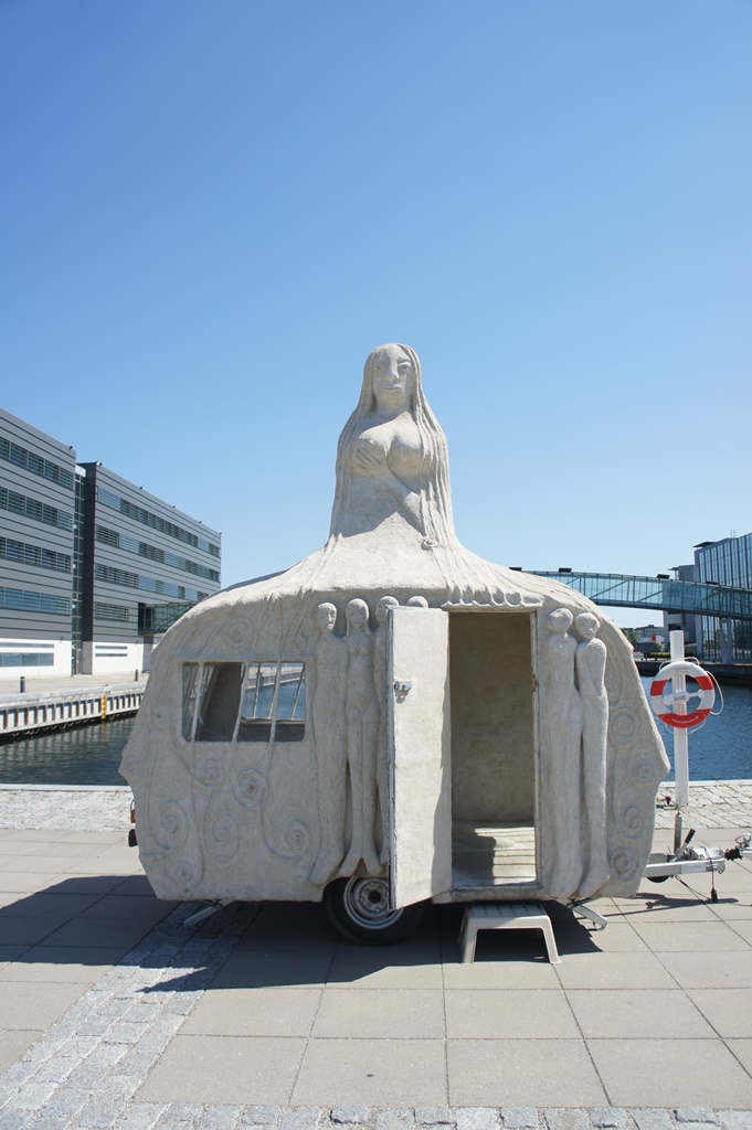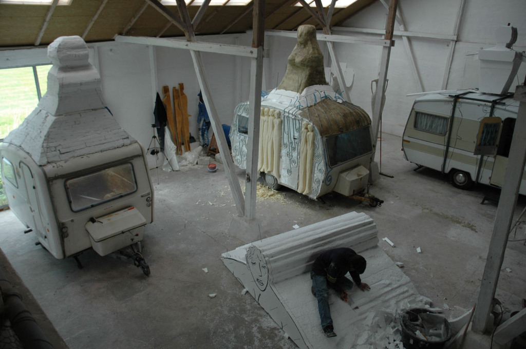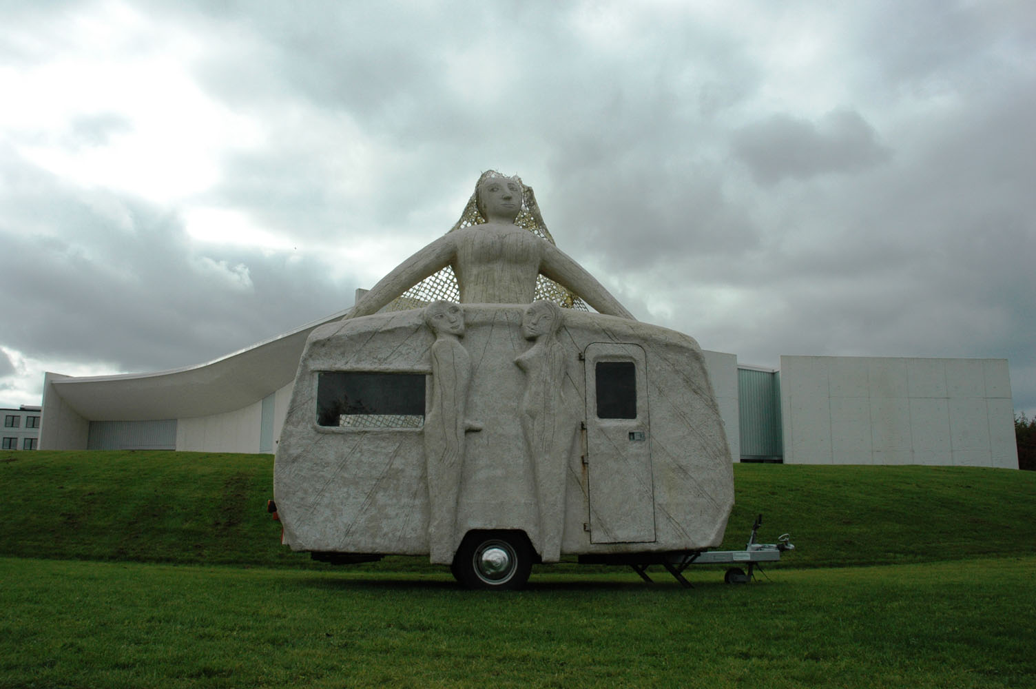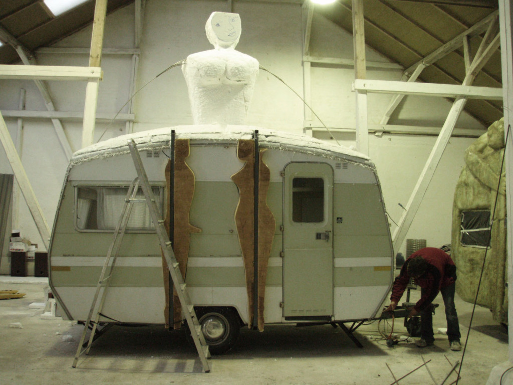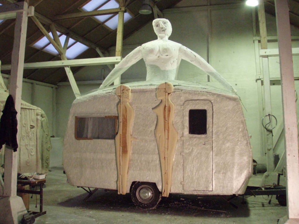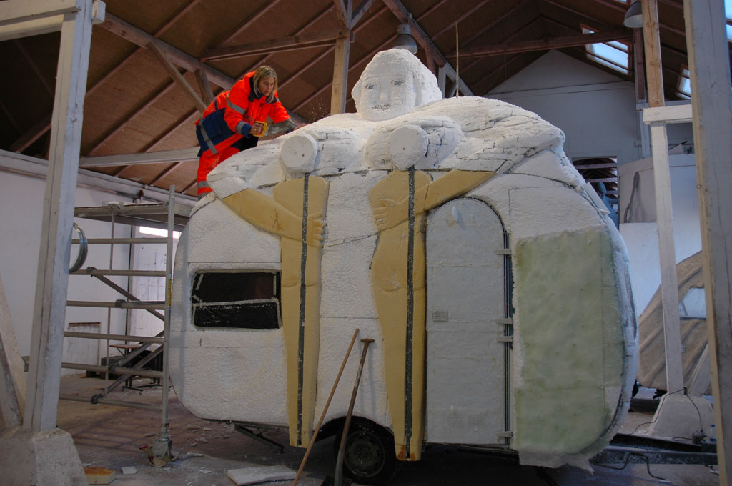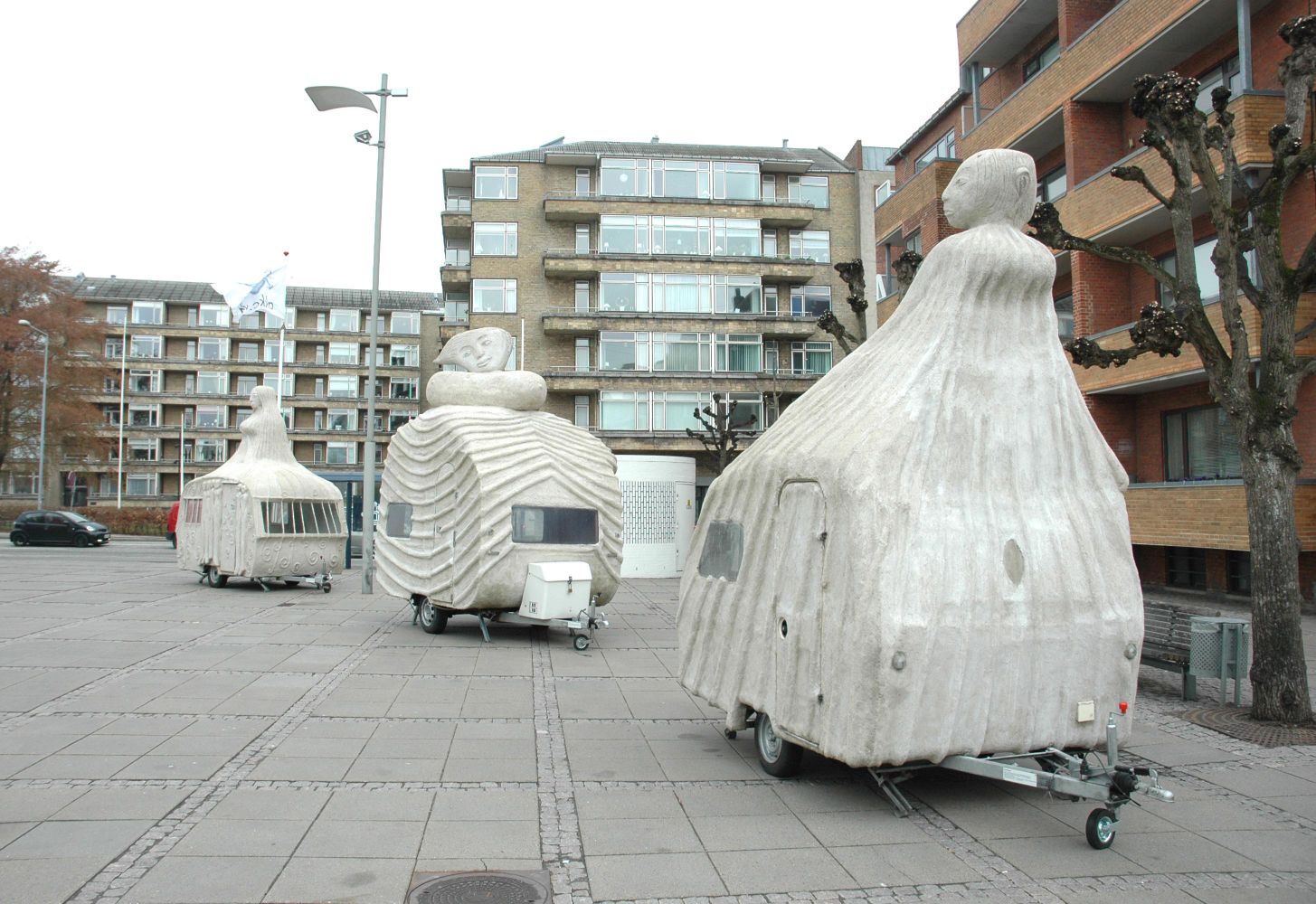 Den bærende idé og samtidigt den indre armering til opbygning af betonskulpturerne, er funktionelle campingvogne, fra tresserne og halvfjerdserne. De indre rum er bearbejdet på forskellige måder, både visuelt og med musik: Flygtningekvinden er fyldt med porcelænsrelief om det at flygte, lavet af børn og flygtningekvinder i samarbejde. Bruden og Campingmama er tapetseret med indsamlede fotos, fra hhv. bryllup og camping. Jomfru Maria optræder som beskytter og bærer af smerte, mens Sirenen er den ambivalente frister og forfører.