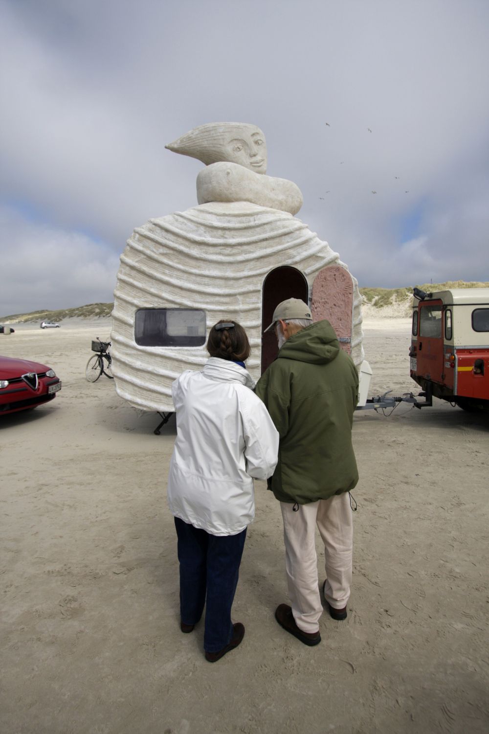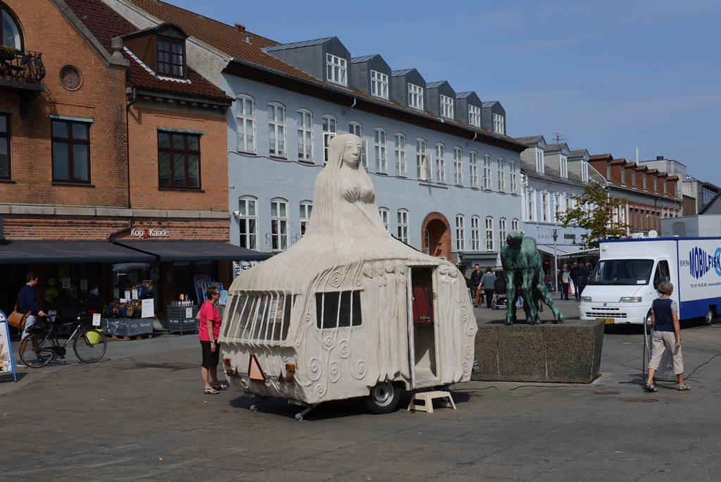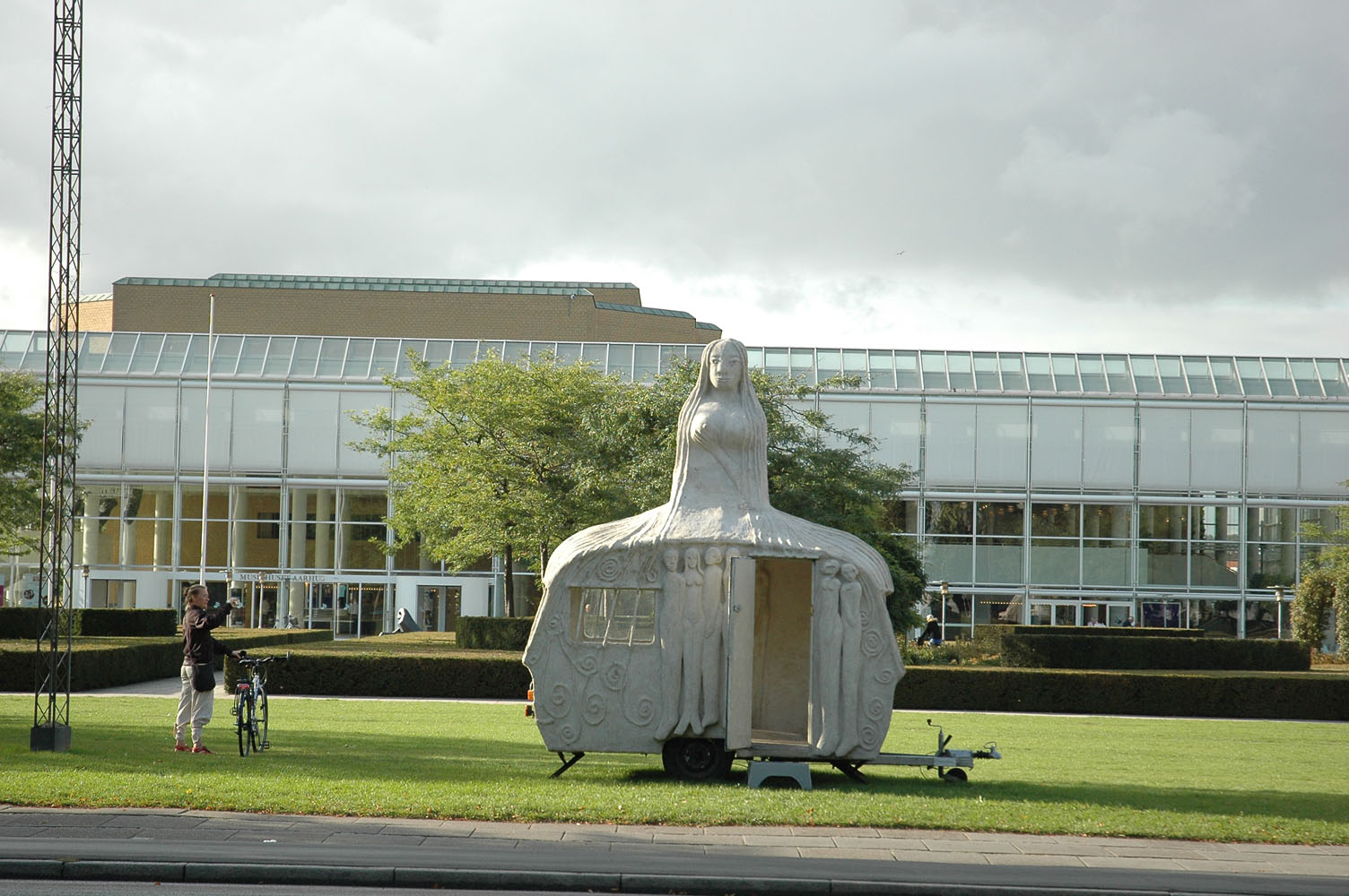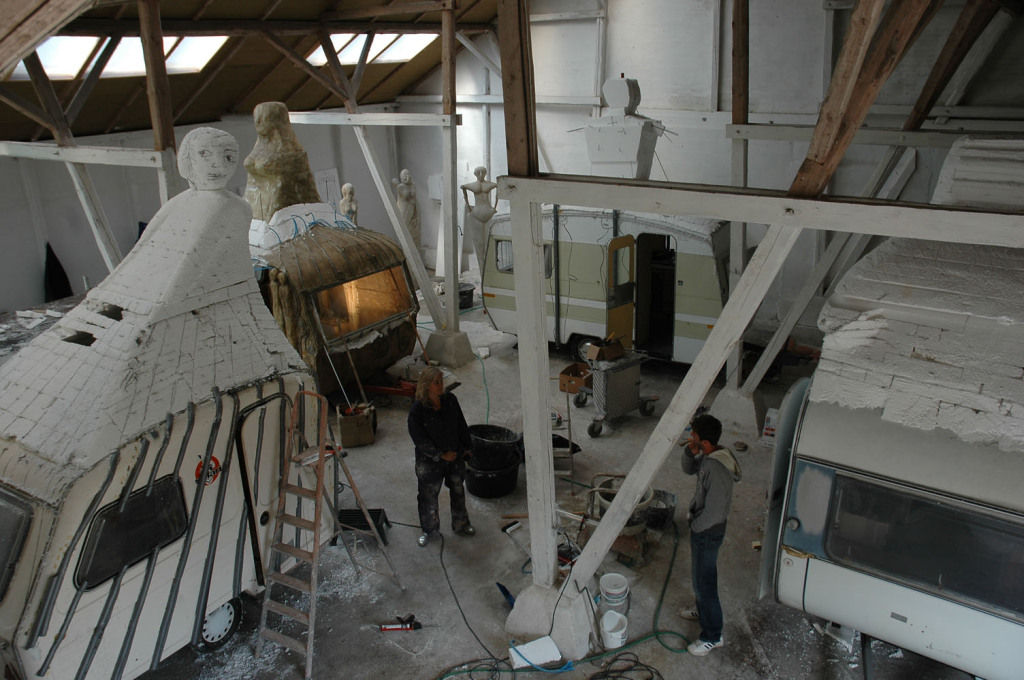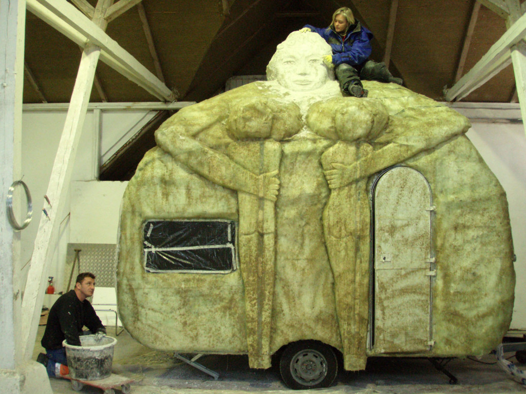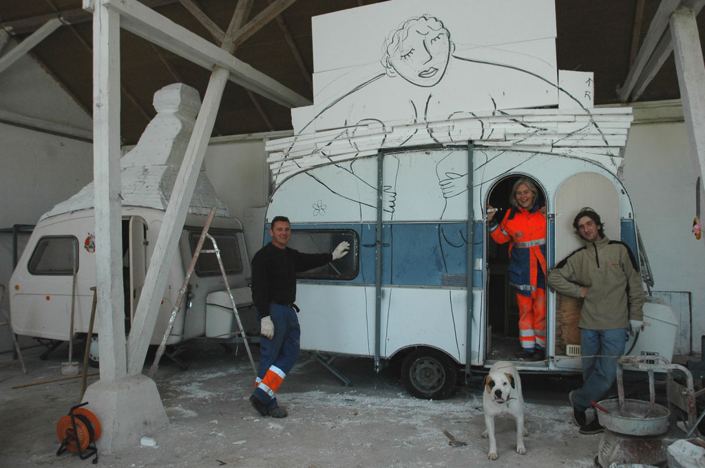 Den bærende idé og samtidigt den indre armering til opbygning af betonskulpturerne, er funktionelle campingvogne, fra tresserne og halvfjerdserne. De indre rum er bearbejdet på forskellige måder, både visuelt og med musik: Flygtningekvinden er fyldt med porcelænsrelief om det at flygte, lavet af børn og flygtningekvinder i samarbejde. Bruden og Campingmama er tapetseret med indsamlede fotos, fra hhv. bryllup og camping. Jomfru Maria optræder som beskytter og bærer af smerte, mens Sirenen er den ambivalente frister og forfører.