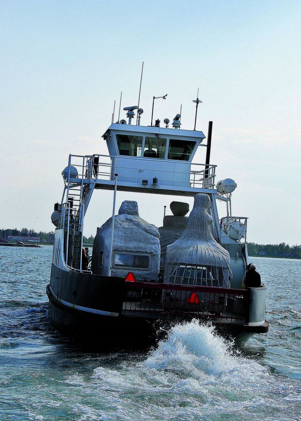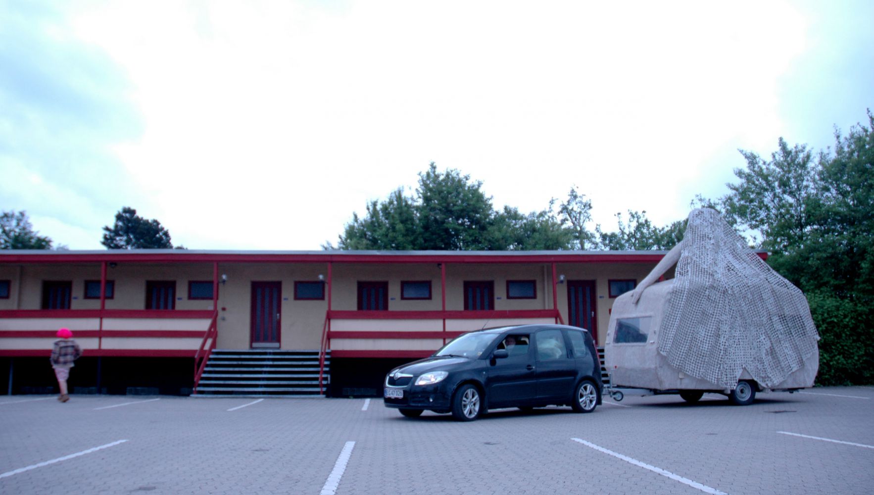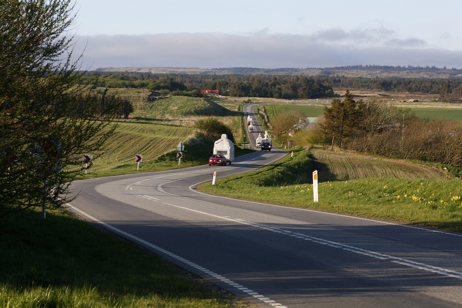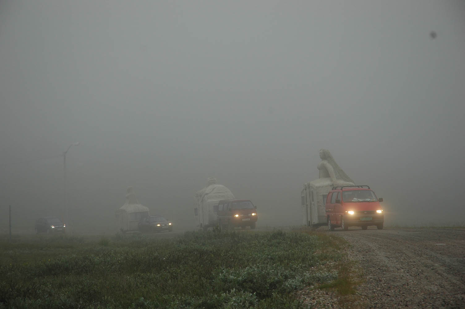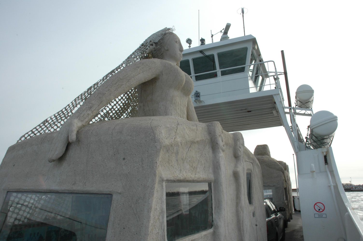 Skulpturerne er i kørbar stand, de ankommer bag hver sin bil og har været på lange campingture i Norge, Danmark og på Island.