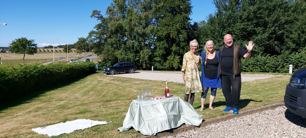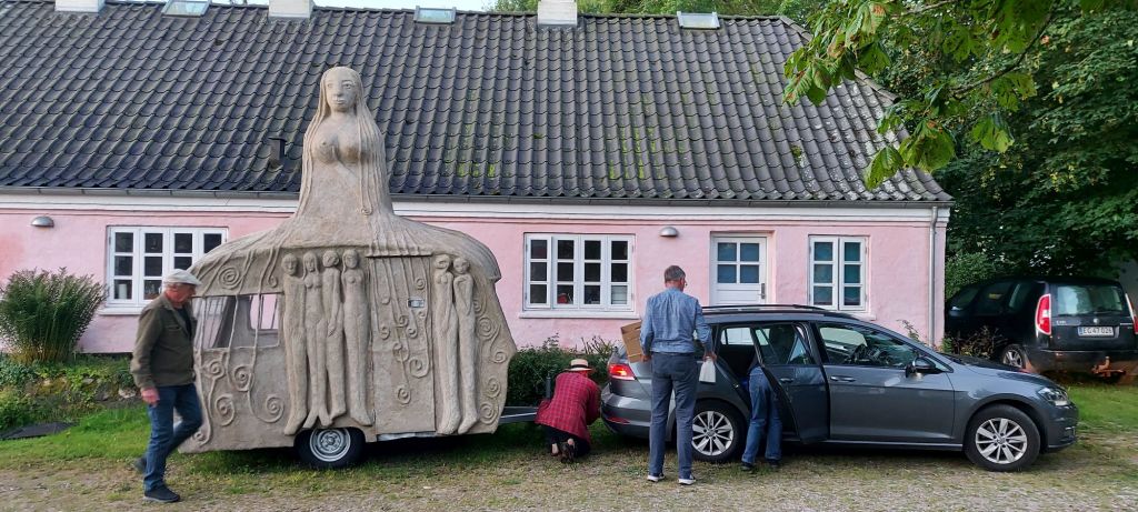 31/8 - 1-9 2022 MED HJÆLP FRA 12 FRIVILLIGE CHAFFØRER BLEV CAMPINGKVINDERNE KØRT AFSTED MED 30 KMT TIL KAREN BLIXEN MUSEET I RUNGSTEDLUND HVOR DE FIK EN FLOT MODTAGELSE AF SKOLEELEVER OG FLAG. DE SKAL UDSTILLES I MUSEUMS HAVEN FREM TIL 30/11. SE BILLEDER FRA TUREN FRA MYGDAL TIL RUNGSTED.