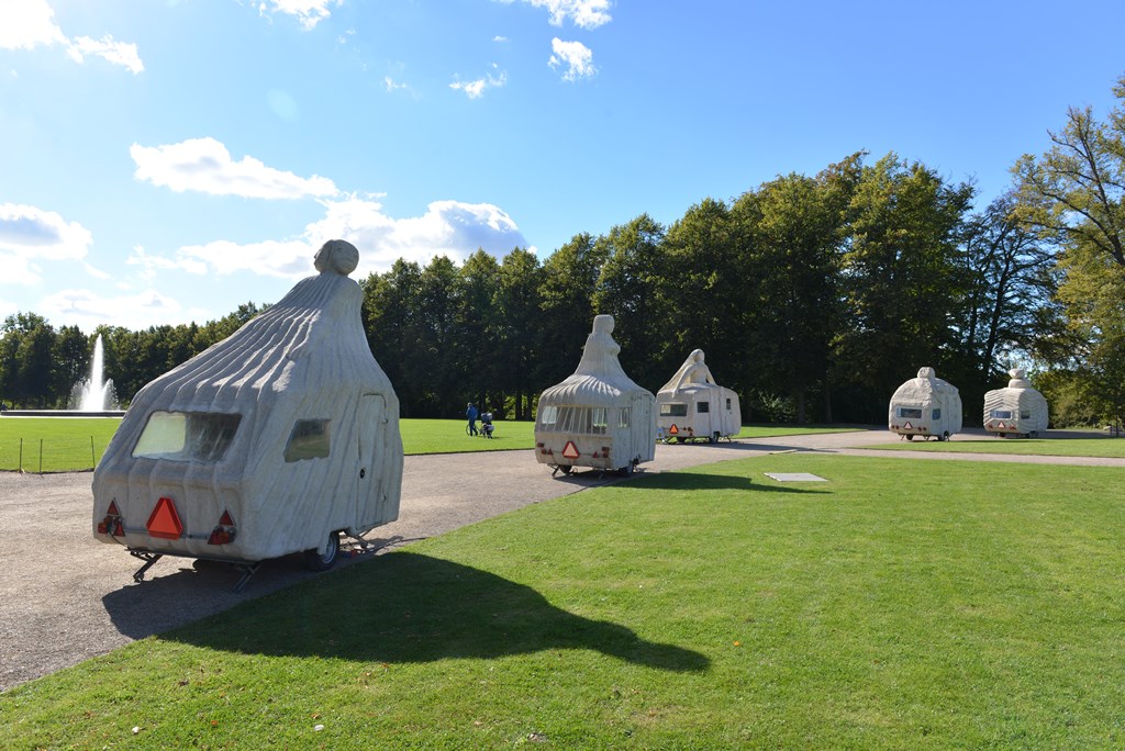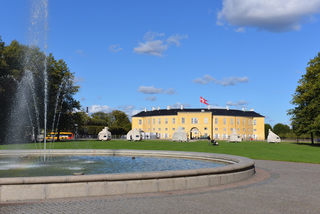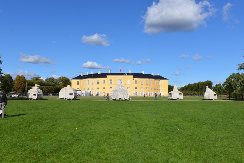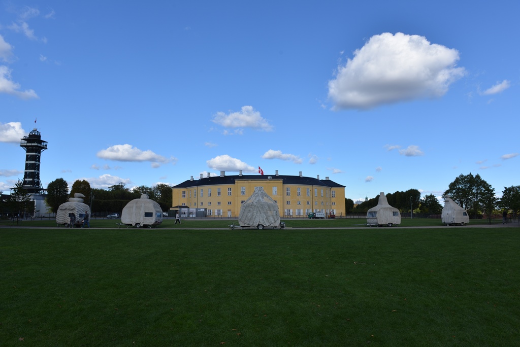 Campingkvinder på Frederiksberg som en del af LYS&LIV i Søndermarken, fra den 17-30 september. Her opstillet på springvandsplænen foran Frederiksberg Slot