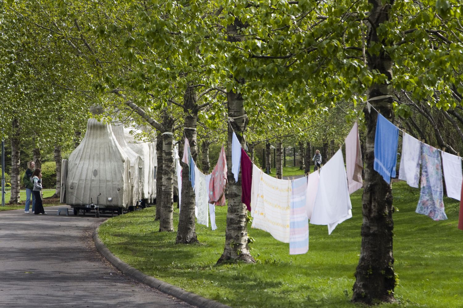 Campingkvinder var med til åbningen af reCreate, et globalt forskningscenter på Aalborg Universitet København i Sydhavnen, den 31. maj. Hvorefter de stod ved Universitetet sommerne over.