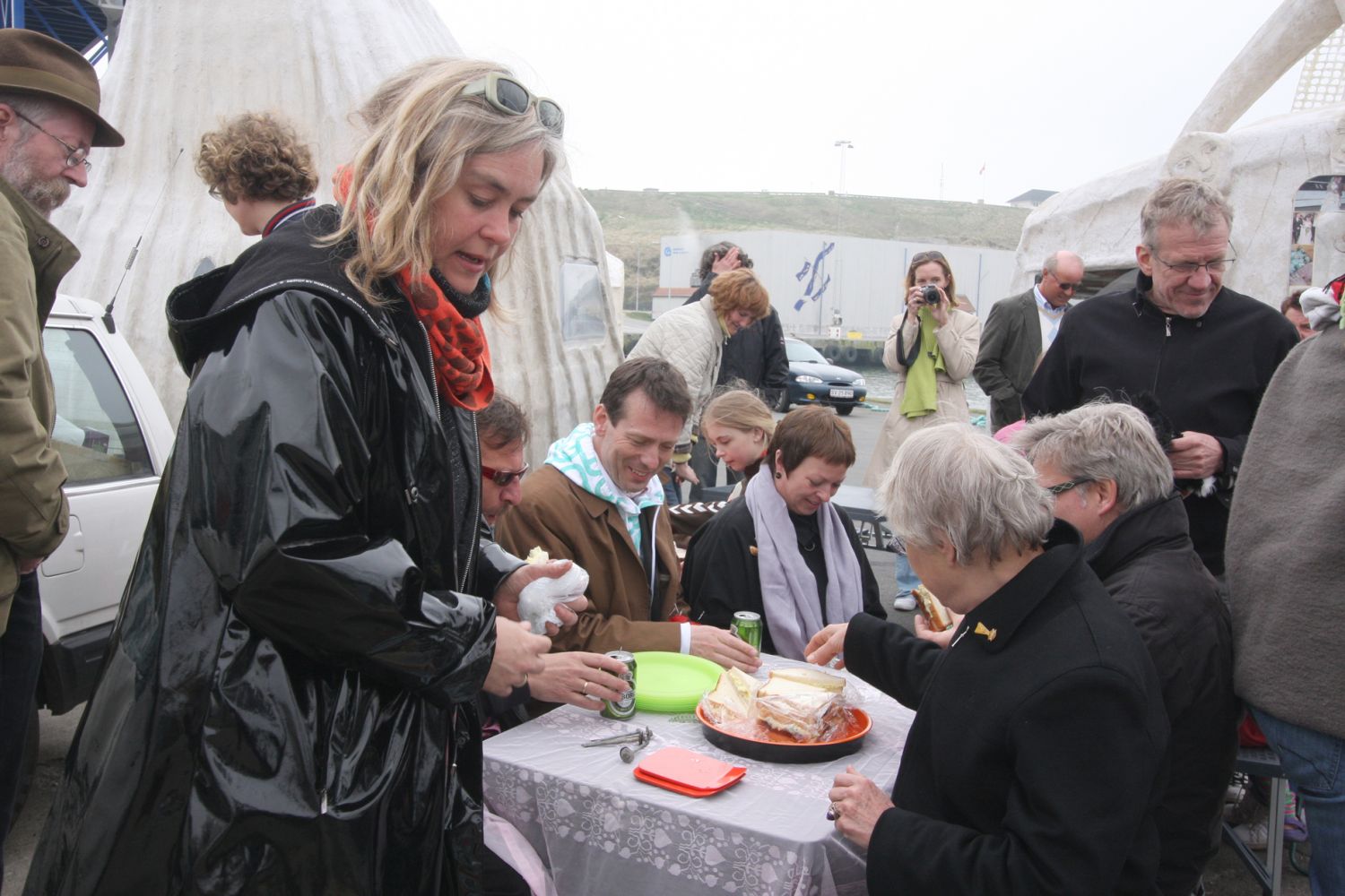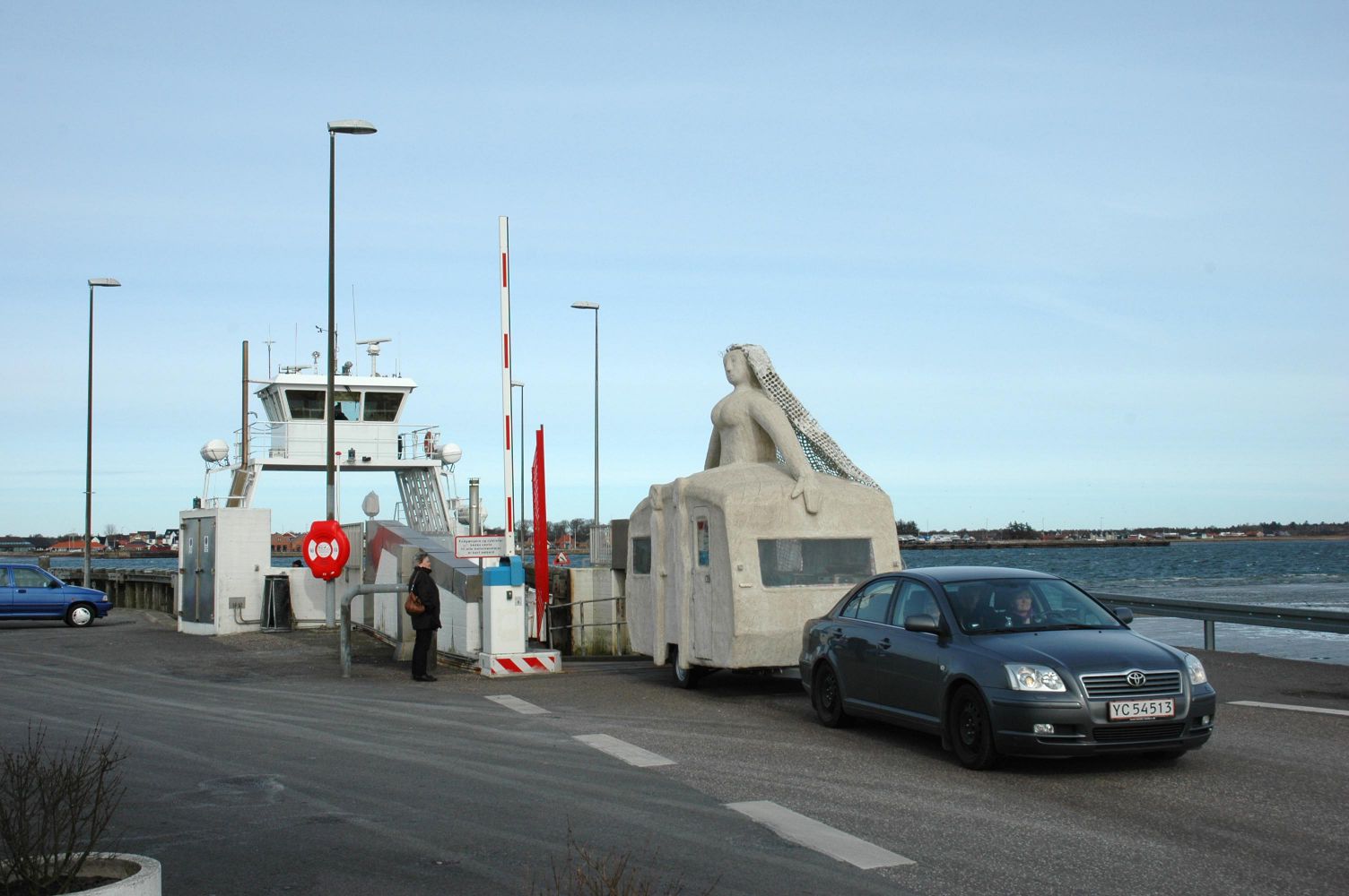 2 dages tur fra Mygdal til Aarhus, med stop i Sæby og ved Aros for at få fragtet campingkvinderne på containerskib til Reykjavik Arts Festival på Island