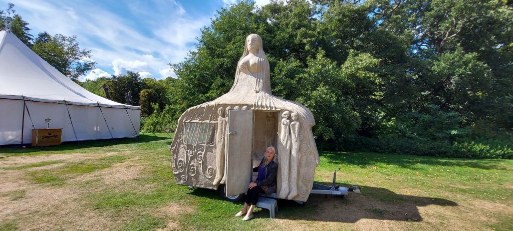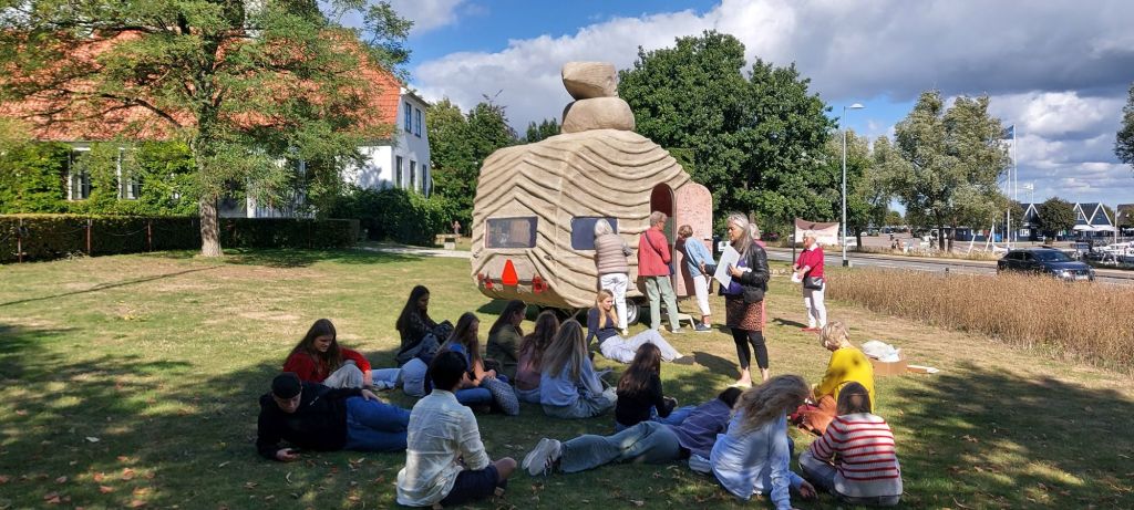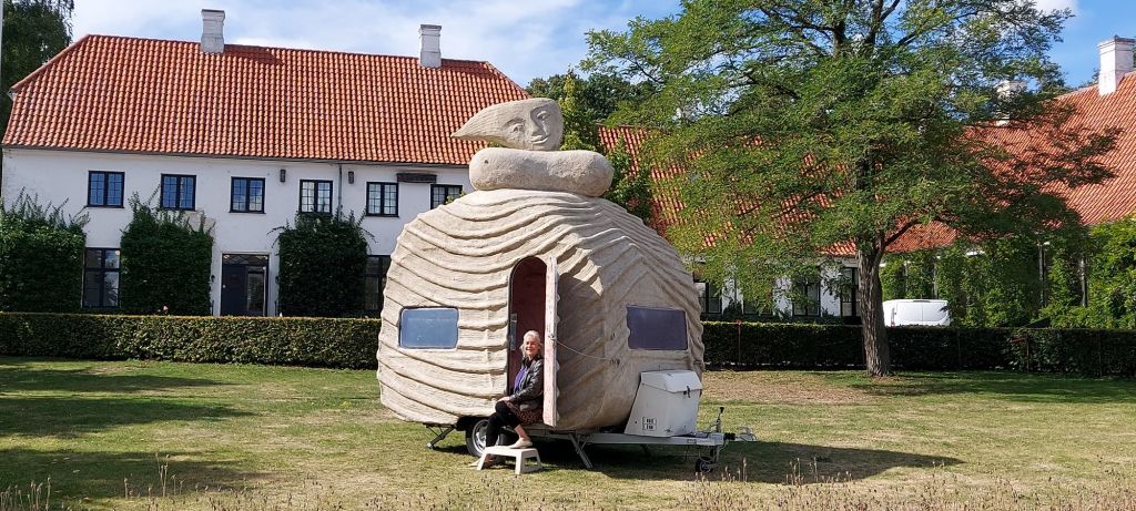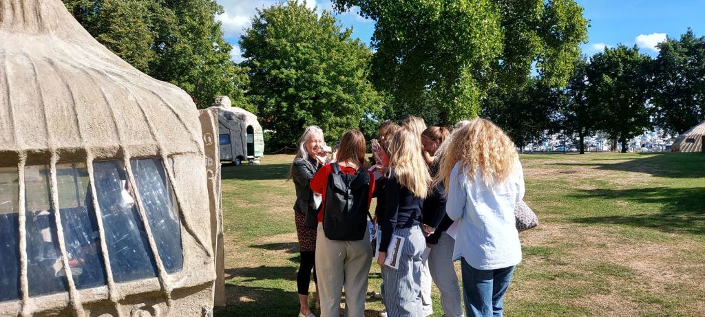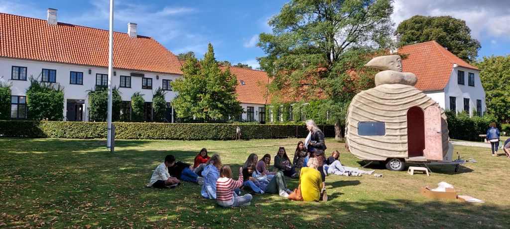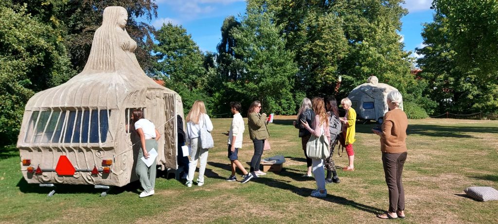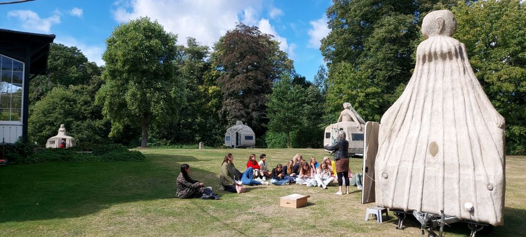 6/9 2022 CAMPINGKVINDER OPSTILLET I MUSEUMS HAVEN PÅ RUNGSTEDLUND. OG BENTHE NORHEIM DER AFHOLDER EN WORKSHOP FOR SKOLEELEVER.