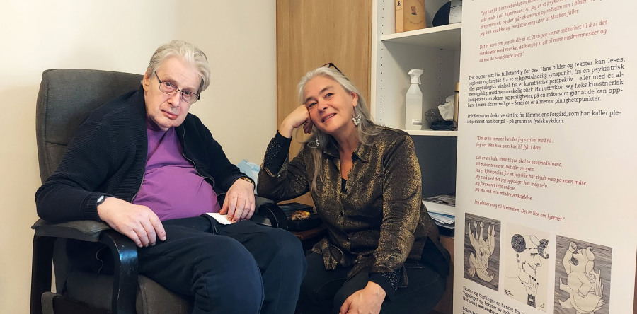 Marit Benthe Norheim og Erik Bomann-Larsen sammen på Sitrus, Lyngbakken Pleiehjem, nov. 2022
