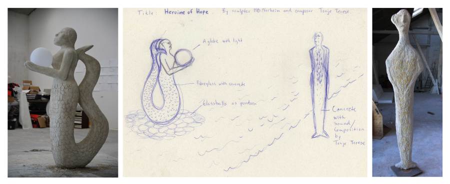 Marit Benthe Norheim participates with Tonje Terese/MIRRORship with the work Heroine of Hope and Crying Skeletons