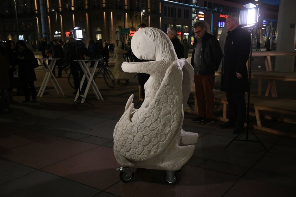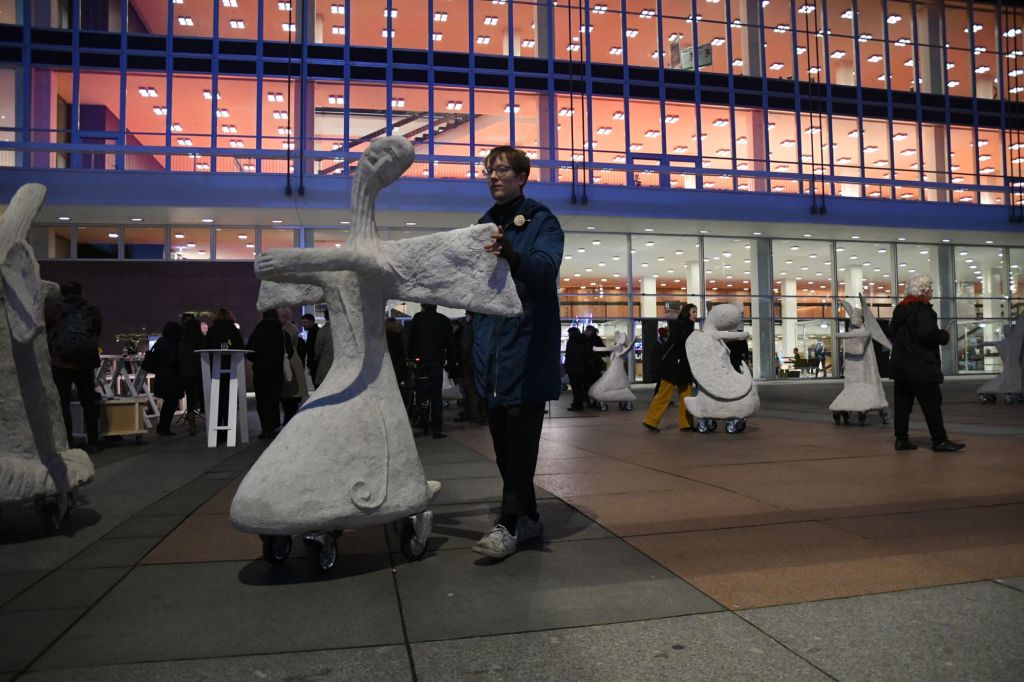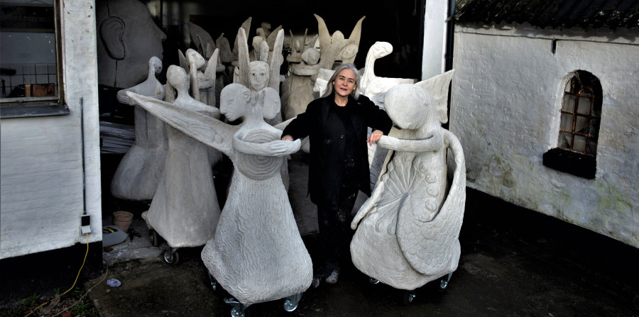The North Jutland Norwegian-born artist Benthe Norheim rolls 17 angels created in concrete into Dresden on an emotional mission. This is to mark the 75th anniversary of the Allies' bombing of Dresden during World War II.