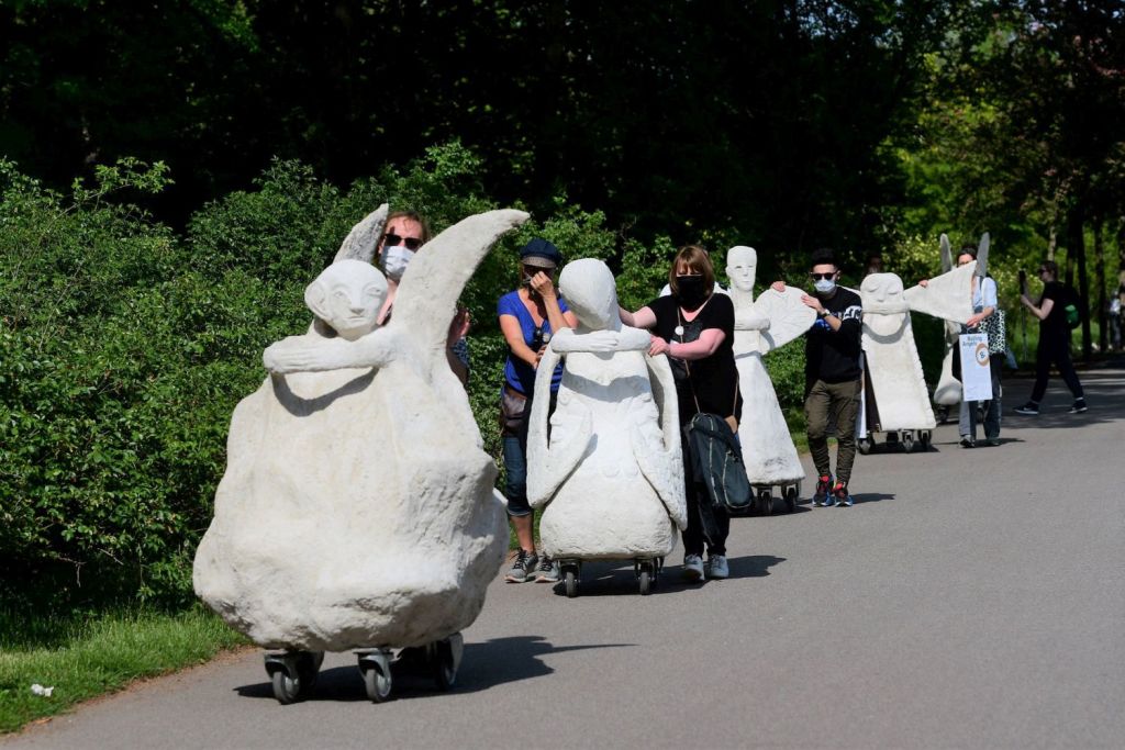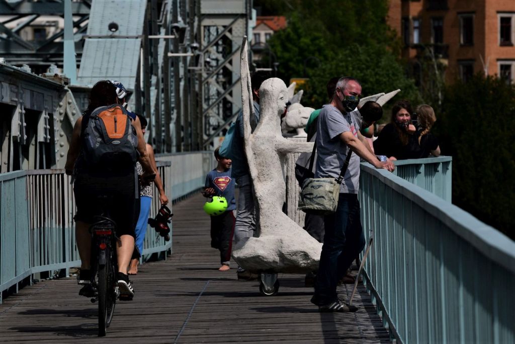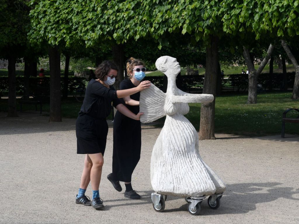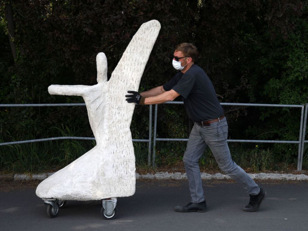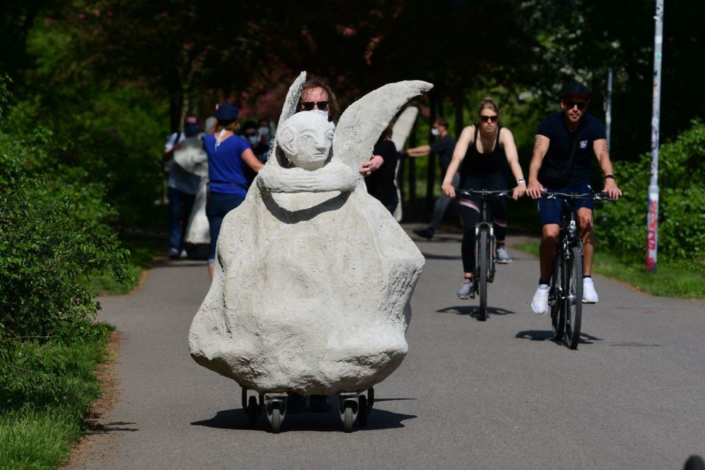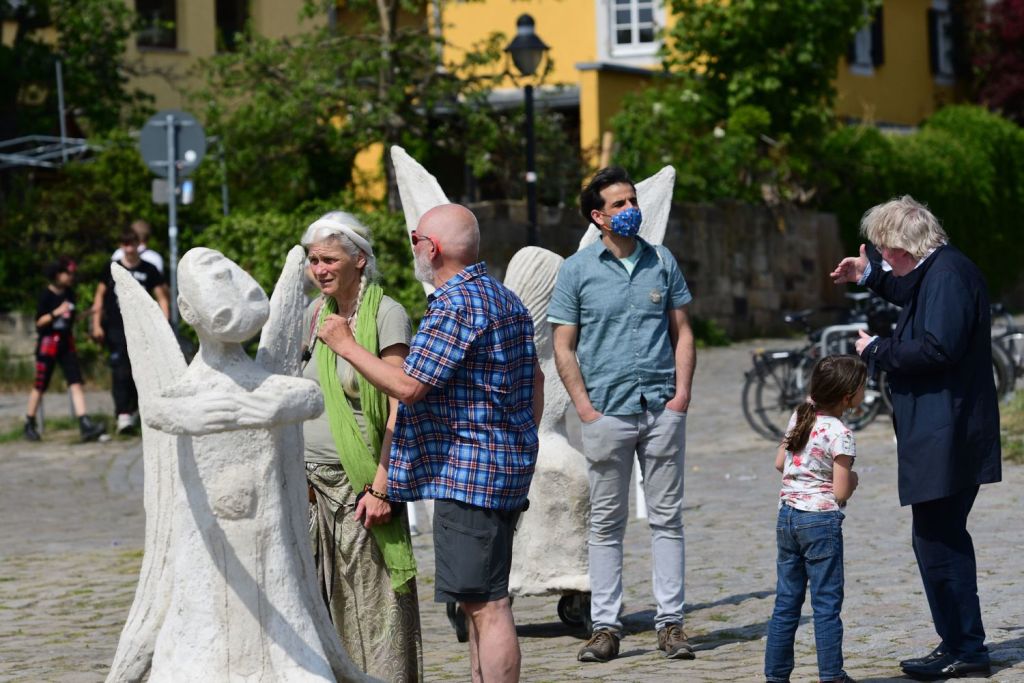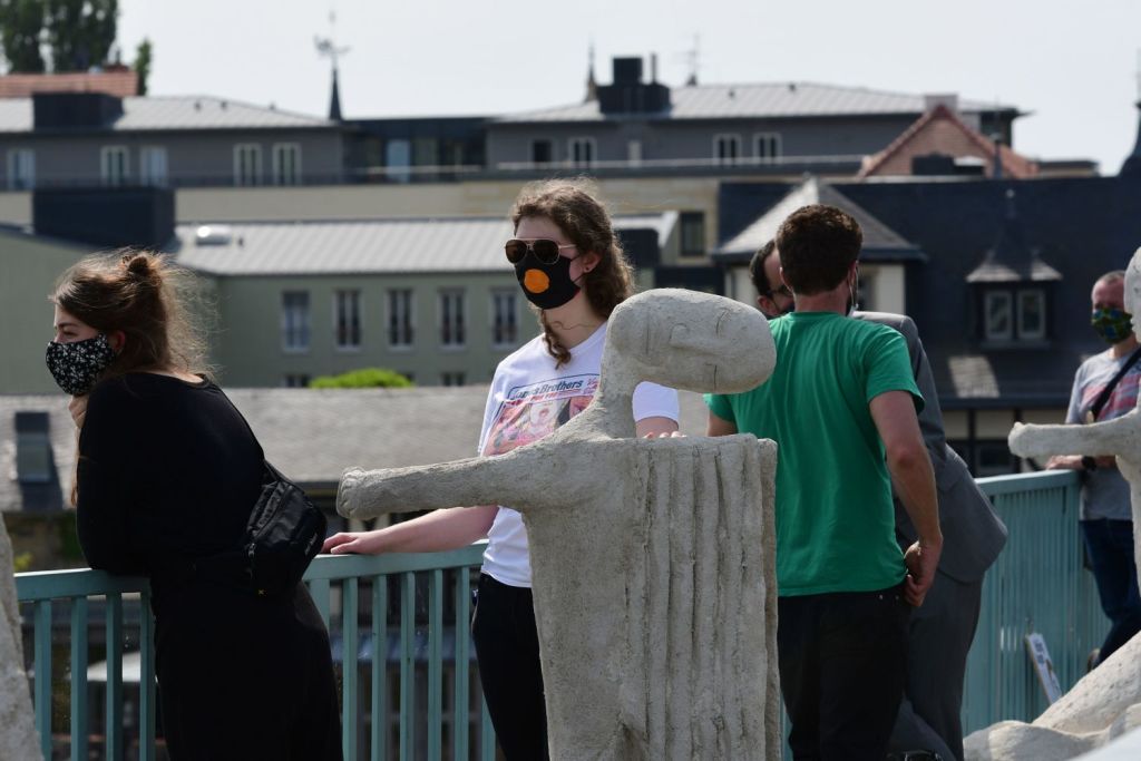 The performance with 17 rolling angel sculptures made of white concrete by the Norwegian-Danish artist Marit Benthe Norheim with music by composer Geir Johnson will be presented under the title ROLLING ANGELS. Mit sicherem Abstand simultaneously on both banks of the Elbe at the three historical bridges, Augustusbrücke, Albertbrücke and Blaues Wunder. All bridges in Dresden, except for Blaues Wunder, were destroyed by German troops shortly before the end of the war and rebuilt after the war. Today, the bridges can also be regarded as symbols of the connectedness of the urban community.