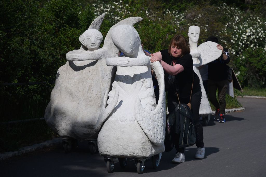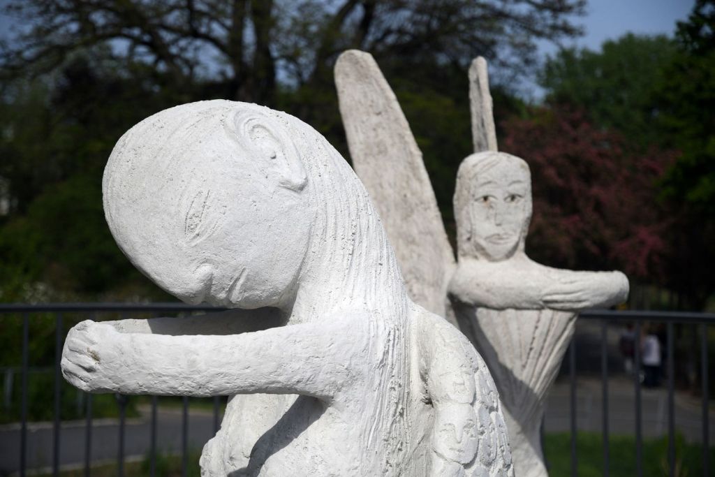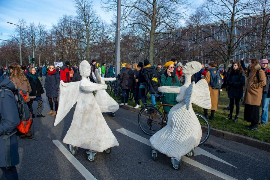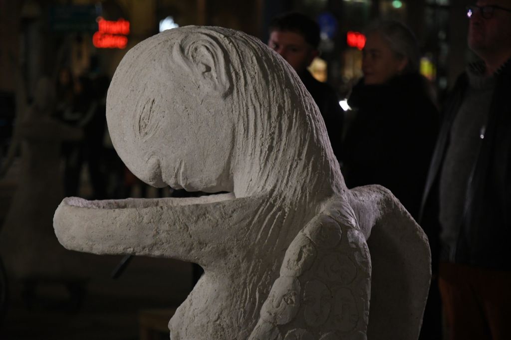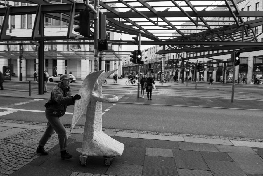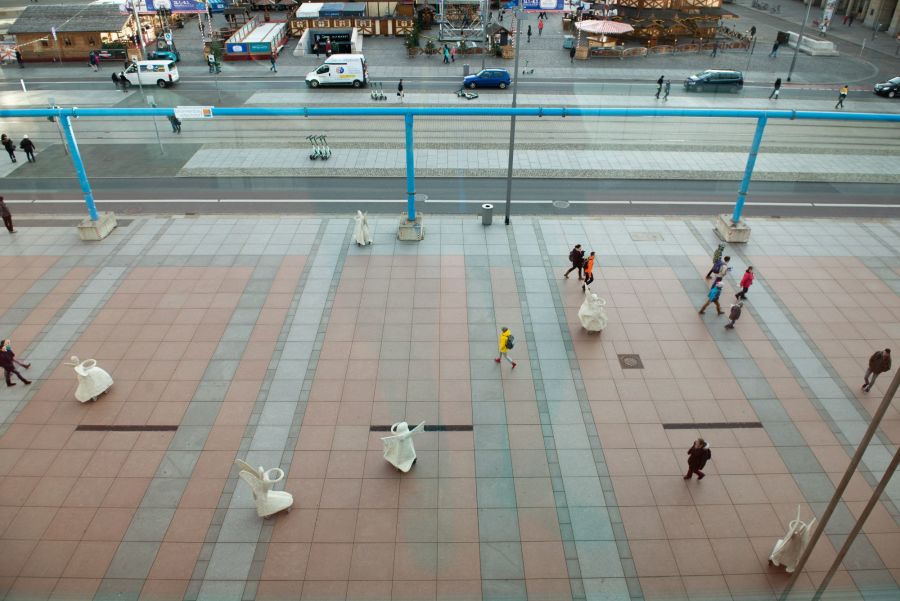 February 5th to 16th An Art Project by Kunsthaus Dresden with the Danish-Norwegian artist Marit Benthe Norheim and the Norwegian composer Geir Johnson in the Urban Space of Dresden. If angels existed, what could they help us with today? Various mythologies and religions have angels, or guardian spirits, in common – Judaism, Islam, Christianity, and also Buddhism is familiar with them. As messengers and intermediaries, they continue to reflect people’s worries about the future and the past. They are counterparts for our fears and worries in extremely distressful situations and stand for sorrow, but also for overcoming it. The angels of the Danish-Norwegian artist Marit Benthe Norheim mingle with humans, moving about on their rollers over the asphalt of our cities.Like Paul Klee’s winged beings and the angels in Wim Wender’s film “Wings of Desire,” they are close to humans with their doubts and worries, but also in their joys and hopes and their quest for peace.The art project is initiated by the Kunsthaus Dresden as part of the Museums of the City of Dresden on the occasion of the 75th anniversary of the destruction of Dresden during the war in February 1945. The flock of angels will be released into the public space in the center of Dresden in front of the Culture Palace on the 5th of February, 5 pm in the presence of the mayor of Dresden, Dirk Hilbert.The flock of angels invites passers-by to move, their positions change upon the encounter. Two of the guardian angels from the flock of 17 concrete sculptures, “The Carrier” and “The Caretaker,” were created for and will remain in Dresden. In their arms and on their wings they carry the memory of the dead of the Shoah, the Second World War in Europe, and the still prevailing violence of war against people all over the world.A sound installation inside the angels is based on the chirping sounds of insects and is a work by the contemporary Norwegian composer Geir Johnson. The project will be accompanied by postcards inviting passers-by to share their thoughts around the role, that angels could play in our contemporary life:“If angels existed, what could they help us with? Would they need a passport? What would be their role in our shared life of today?“Marit Benthe Norheim lives and works as a contemporary artist in Hjørring, Denmark. Her work will also be part of the group exhibition REQUIEM on contemporary artistic perspectives on commemoration and mourning at Kunsthaus Dresden from the 8th of February to the 26th of April 2020. Geir Johnson lives and works as a contemporary composer in Oslo. His choir piece “Angel Revelation” has also been created in conjunction with the angels. ROLLING ANGELS is a contemporary art project of Kunsthaus Dresden on the occasion of the 75th anniversary of the destruction of Dresden during the war in February 1945. Requiem is a project of “Rest in Peace” and “Neighbourhoods 2025”.