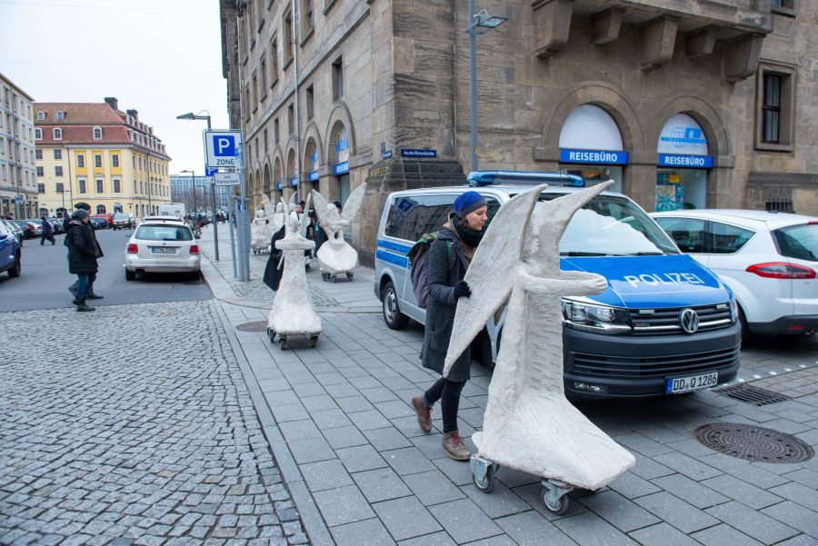 - www.saechsische.de/plus - 6. februar 2020 - Gedenkkunst: Engel rollen durch Dresden