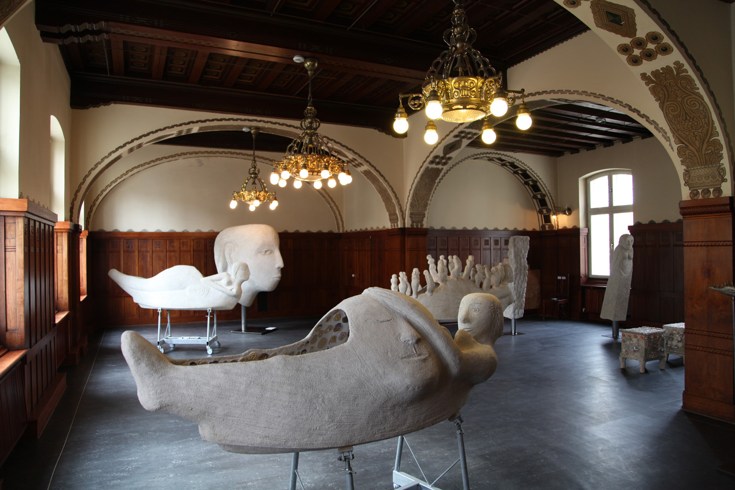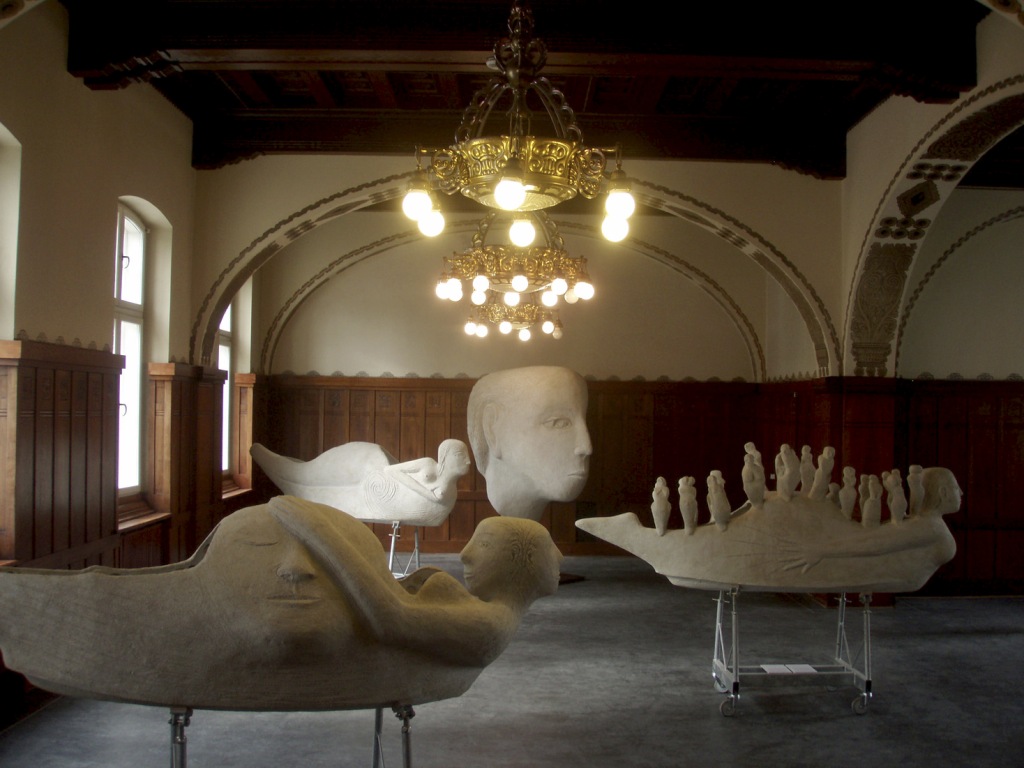 The exhibition includes: 3 Life-boats models in concrete 1:4, bronze models in1:40. 2 figureheads in 1:1 to "My ship is loaded with Memories." The Head to "My ship is loaded with Longing" in 1:1. The Treasure Chest for "My ship is loaded with Longing" in full-scale. Small chests to "My ship is loaded with Memories" created by Sofie (14), Sigrid (14) and Rosa (12). And plenty information about the entire process and worked with Life-Boats up to now.