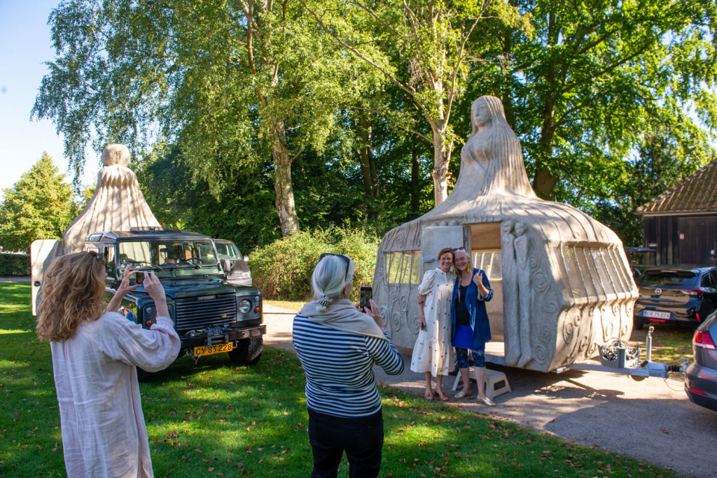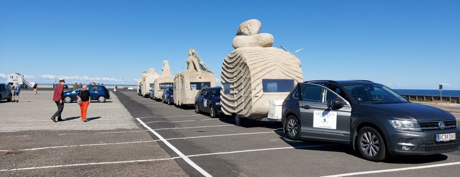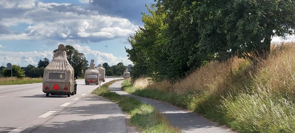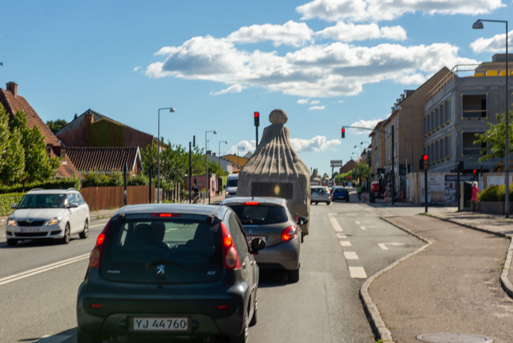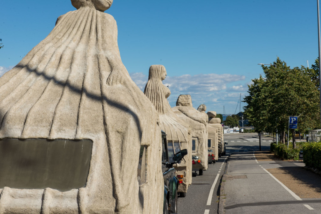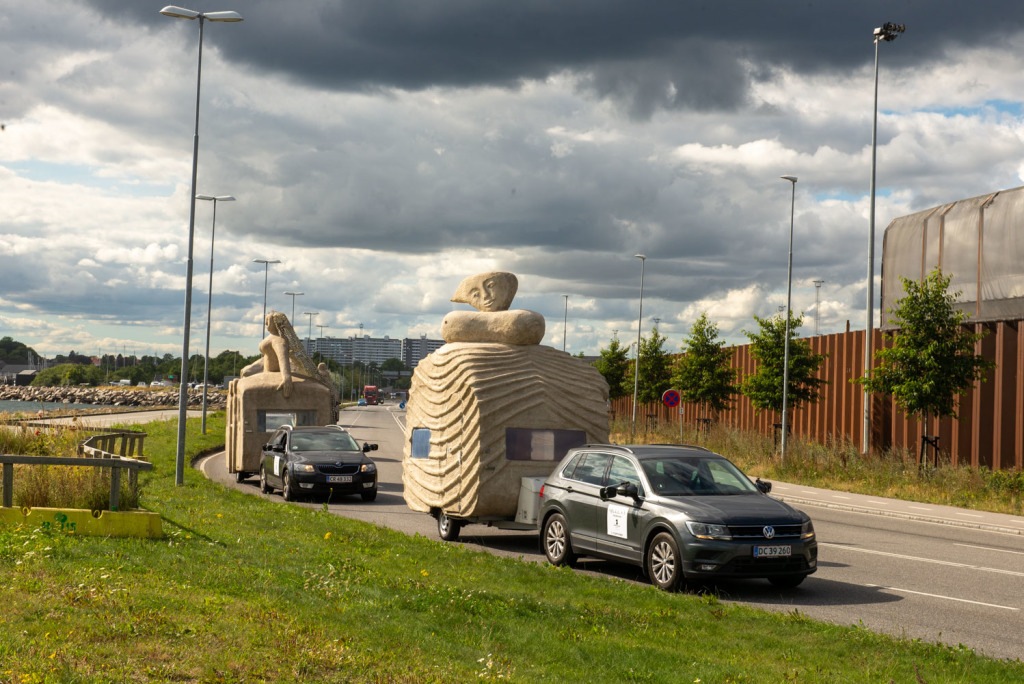 We had 5 voluntary drivers and the passengers were, in addition to the artist and the composer, cultural personalities from Denmark and Norway as well as craftspeople and supporters who had been a part of the process and the completion of the project. The camping trip was a taste of what the sculptures were capable of, by bringing art to places where people do not usually look at art. The people who came with on the trip were also some of the best cultural ambassadors in Denmark and Norway, including the former Danish Minister of Culture, Elsebeth Gerner Nielsen, who is now the leader of the Design School in Kolding, Else Marie Bukdahl, the “grand old lady” of the Danish art world, Dr. phil and former rector of the Danish Royal Academy of Art for 20 years and the author of a series of art books and articles as well as Norwegian Jorunn Veiteberg, also Dr. Phil and professor at Kunsthøjskolen in Bergen, living in Copenhagen.