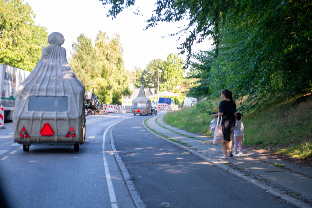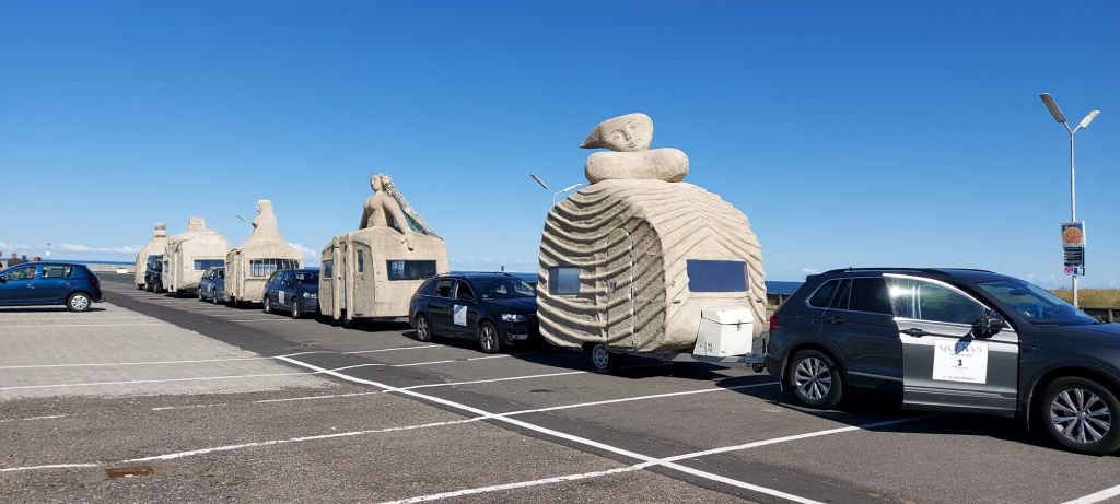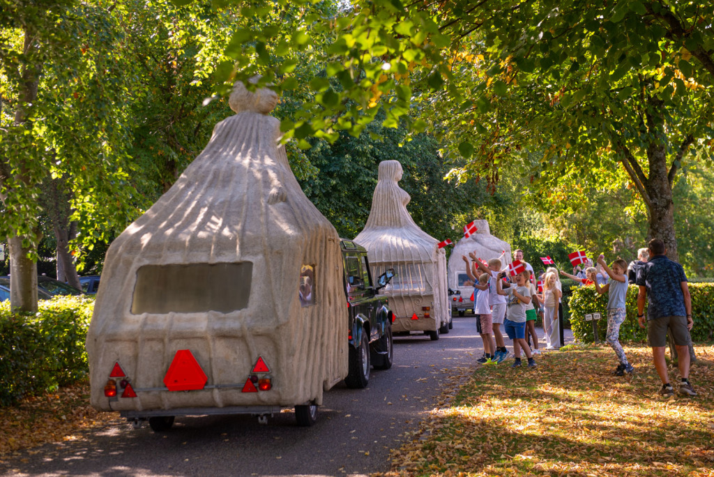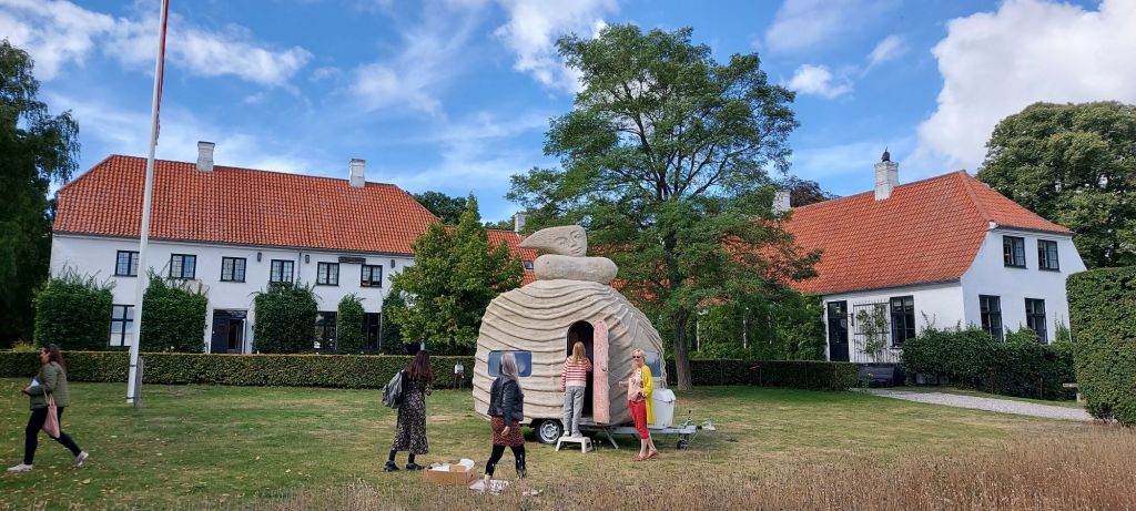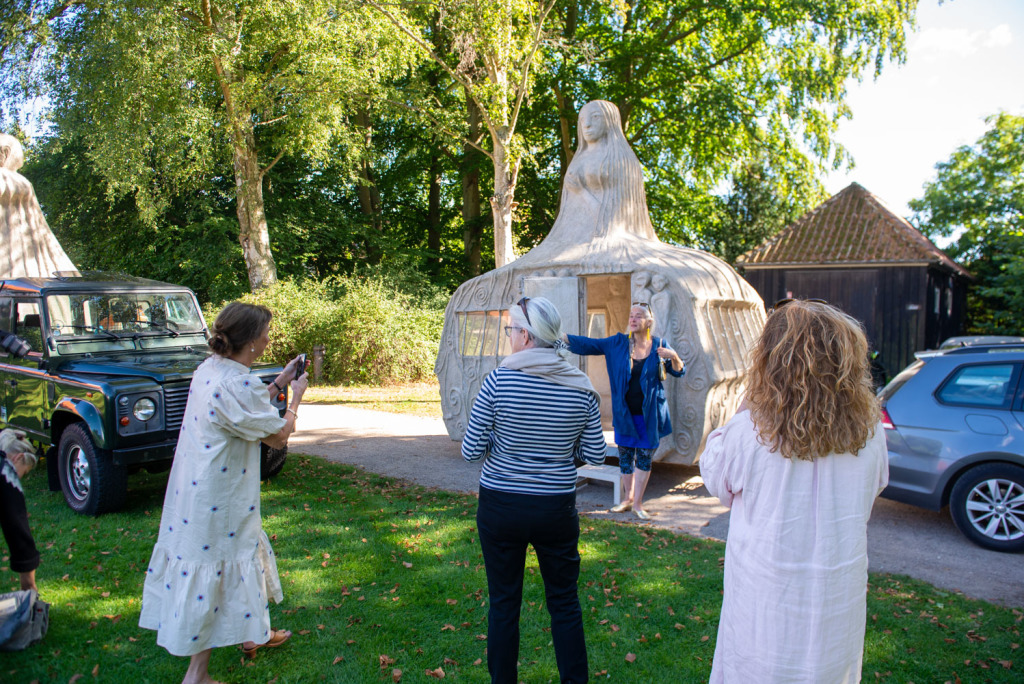 We had 5 voluntary drivers and the passengers were, in addition to the artist and the composer, cultural personalities from Denmark and Norway as well as craftspeople and supporters who had been a part of the process and the completion of the project. The camping trip was a taste of what the sculptures were capable of, by bringing art to places where people do not usually look at art. The people who came with on the trip were also some of the best cultural ambassadors in Denmark and Norway, including the former Danish Minister of Culture, Elsebeth Gerner Nielsen, who is now the leader of the Design School in Kolding, Else Marie Bukdahl, the “grand old lady” of the Danish art world, Dr. phil and former rector of the Danish Royal Academy of Art for 20 years and the author of a series of art books and articles as well as Norwegian Jorunn Veiteberg, also Dr. Phil and professor at Kunsthøjskolen in Bergen, living in Copenhagen.