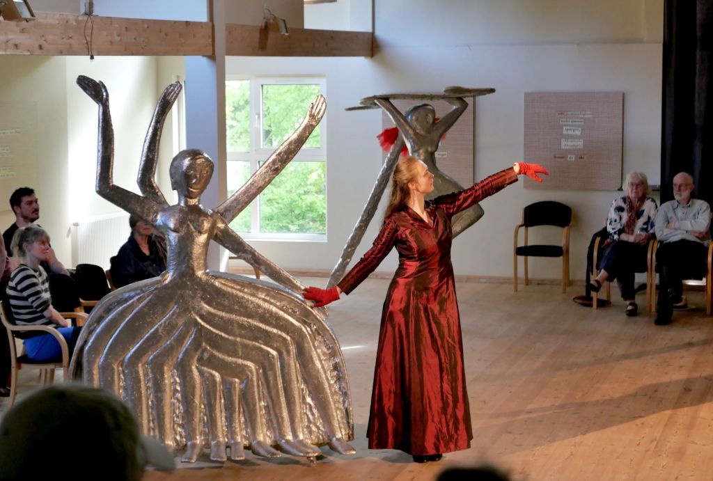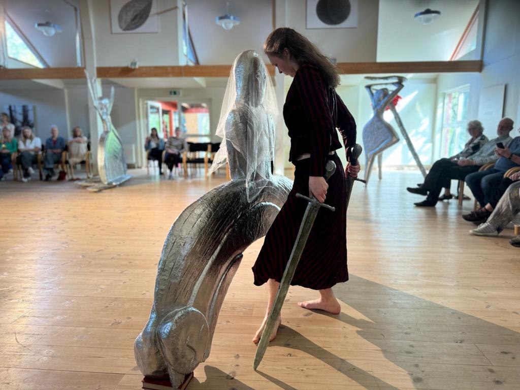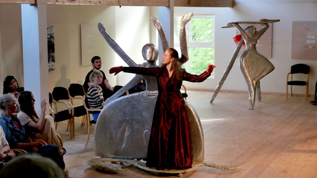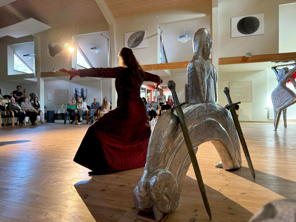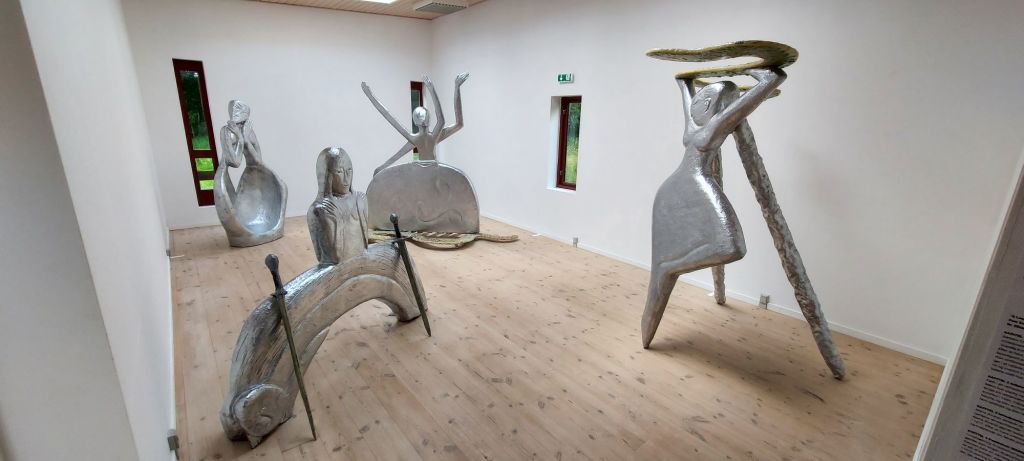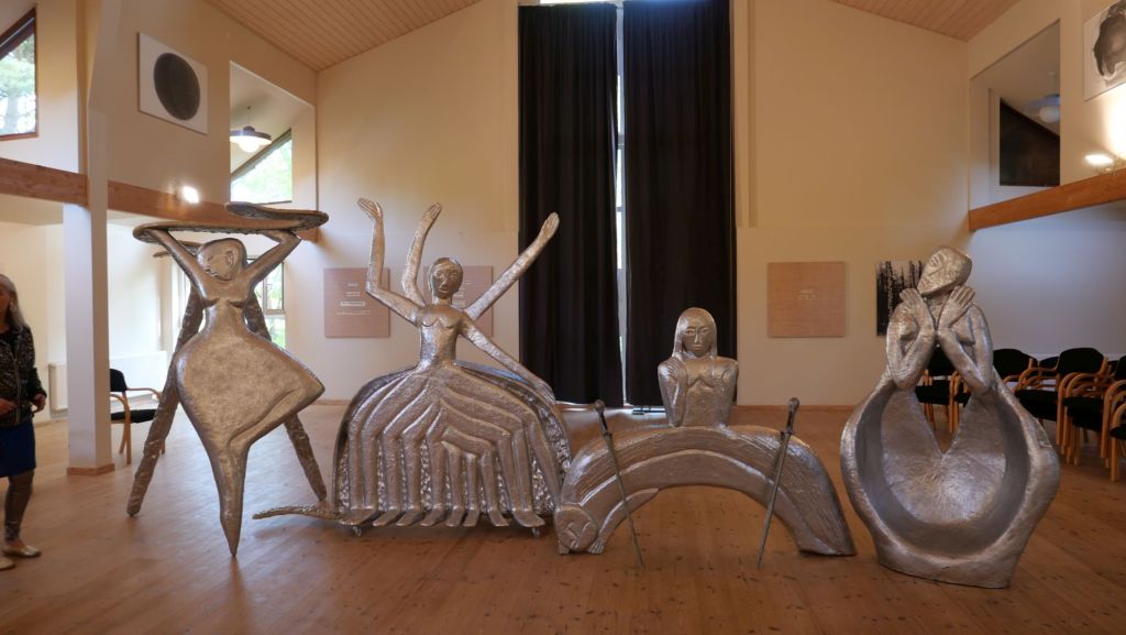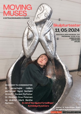 Performing artist Sigrid Norheim Ørntoft created a work inspired by the “4 extraordinary women,” bringing the sculptures to life at Kirsten Kjær Museum on this day.