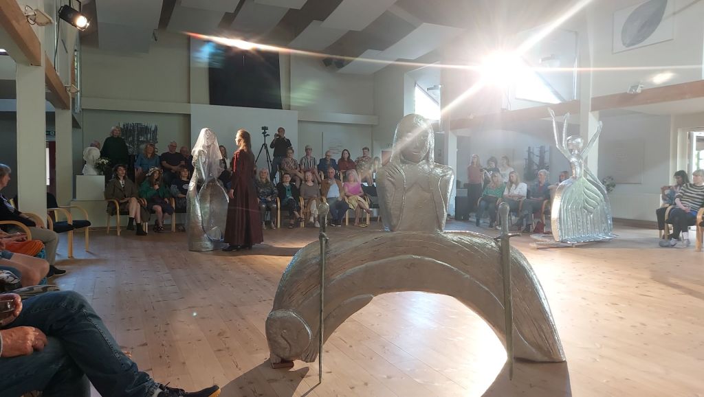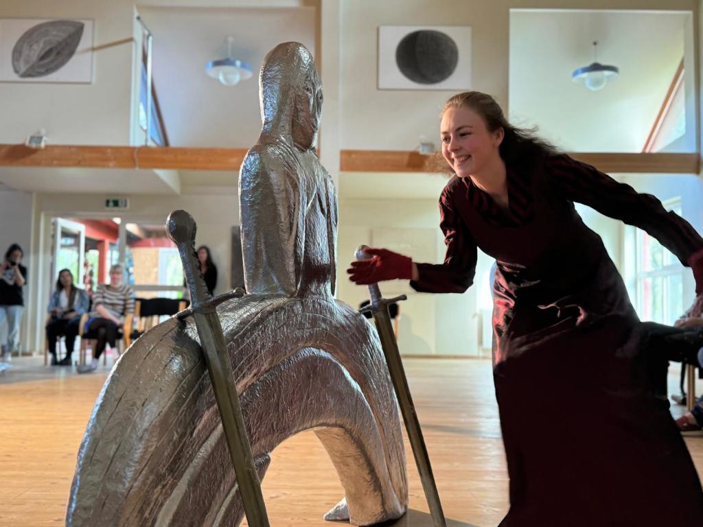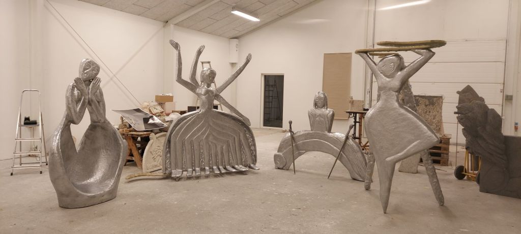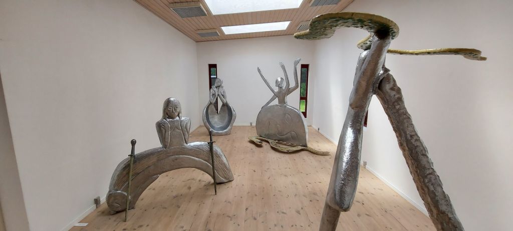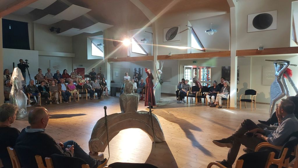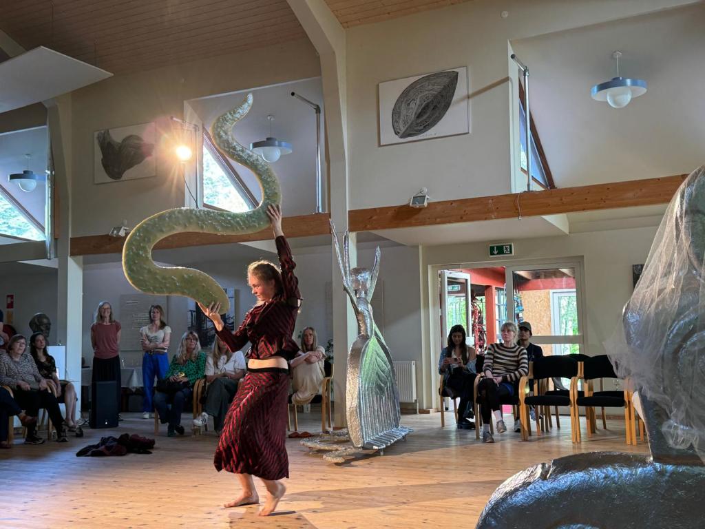 Performing artist Sigrid Norheim Ørntoft created a work inspired by the “4 extraordinary women,” bringing the sculptures to life at Kirsten Kjær Museum on this day.