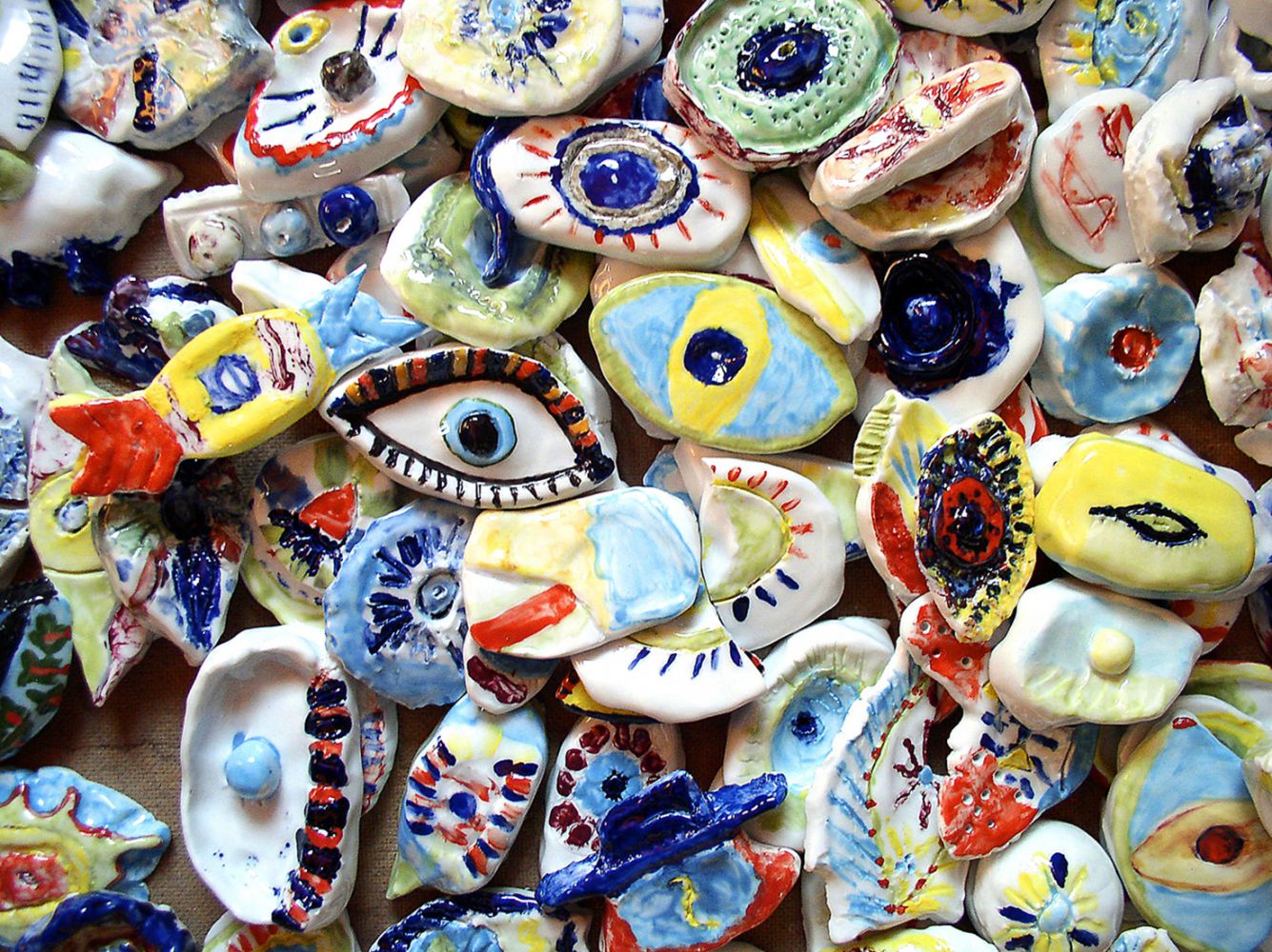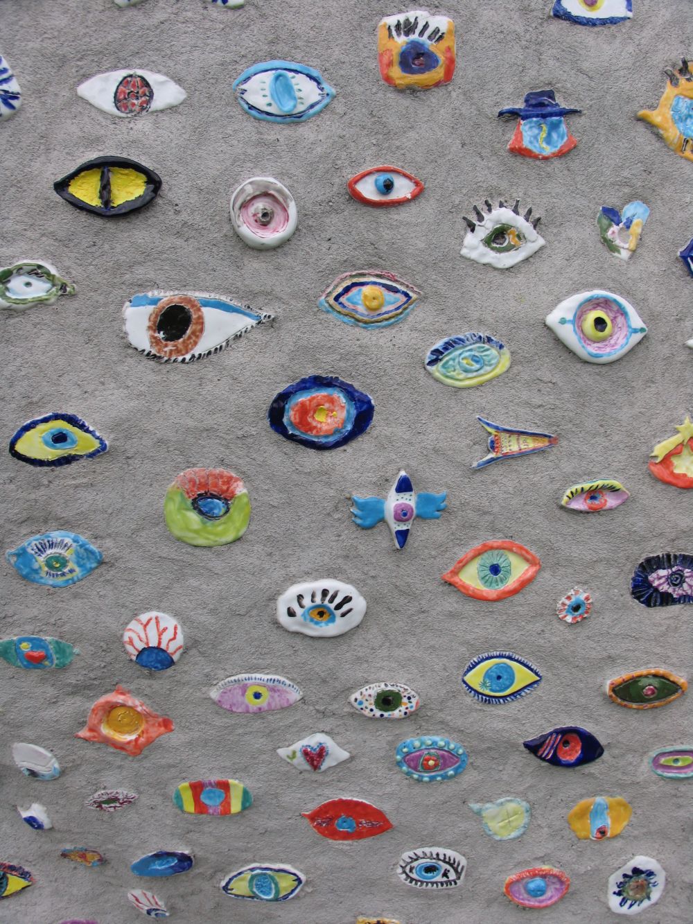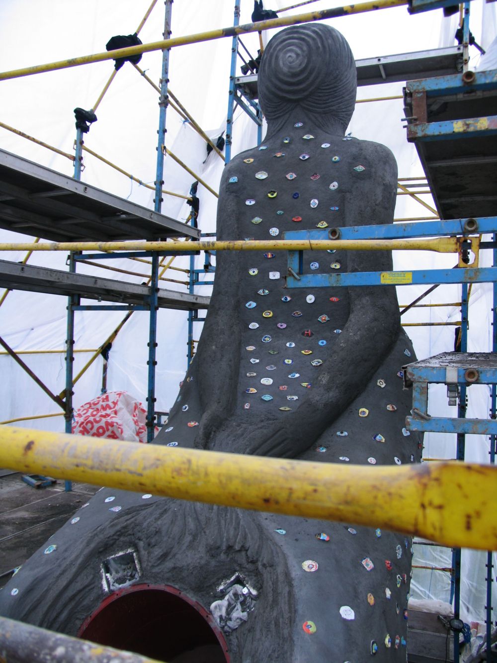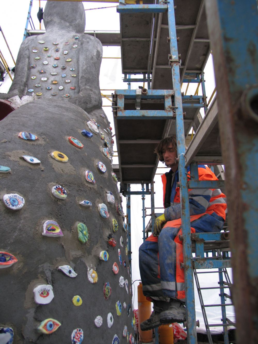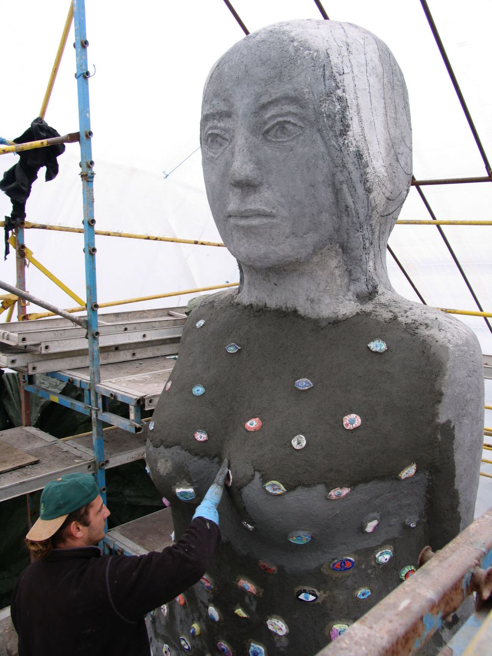 Because the piece is so much about seeing and being seen or not seeing and not being seen, 2300 children and young people have made eyes in porcelain, which are inlaid as a mosaic within her body.