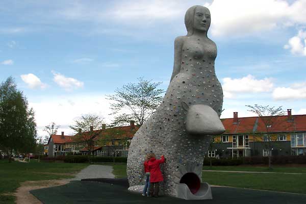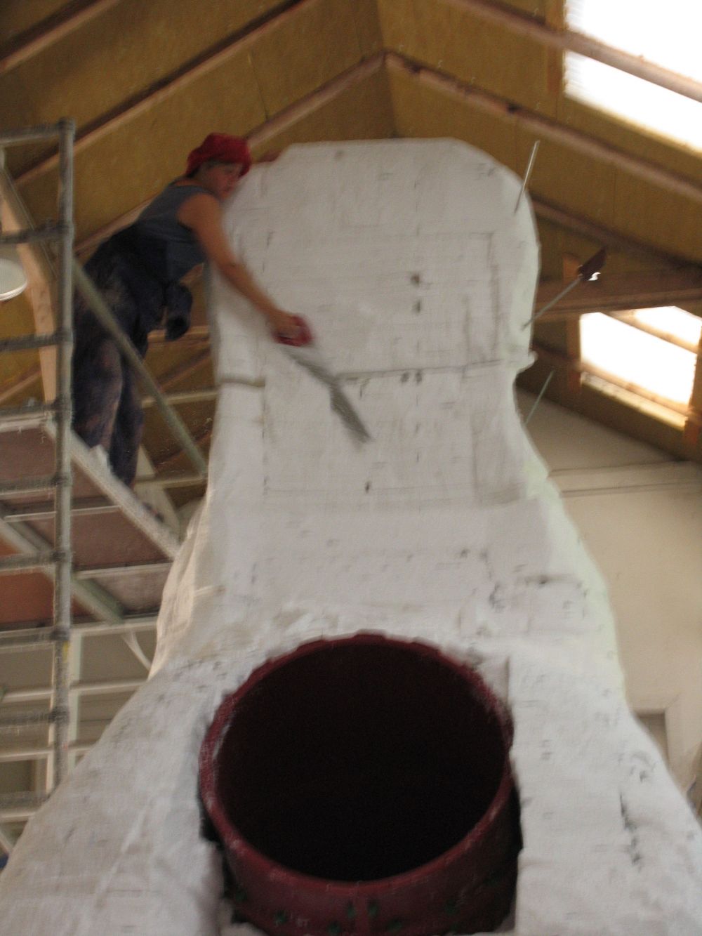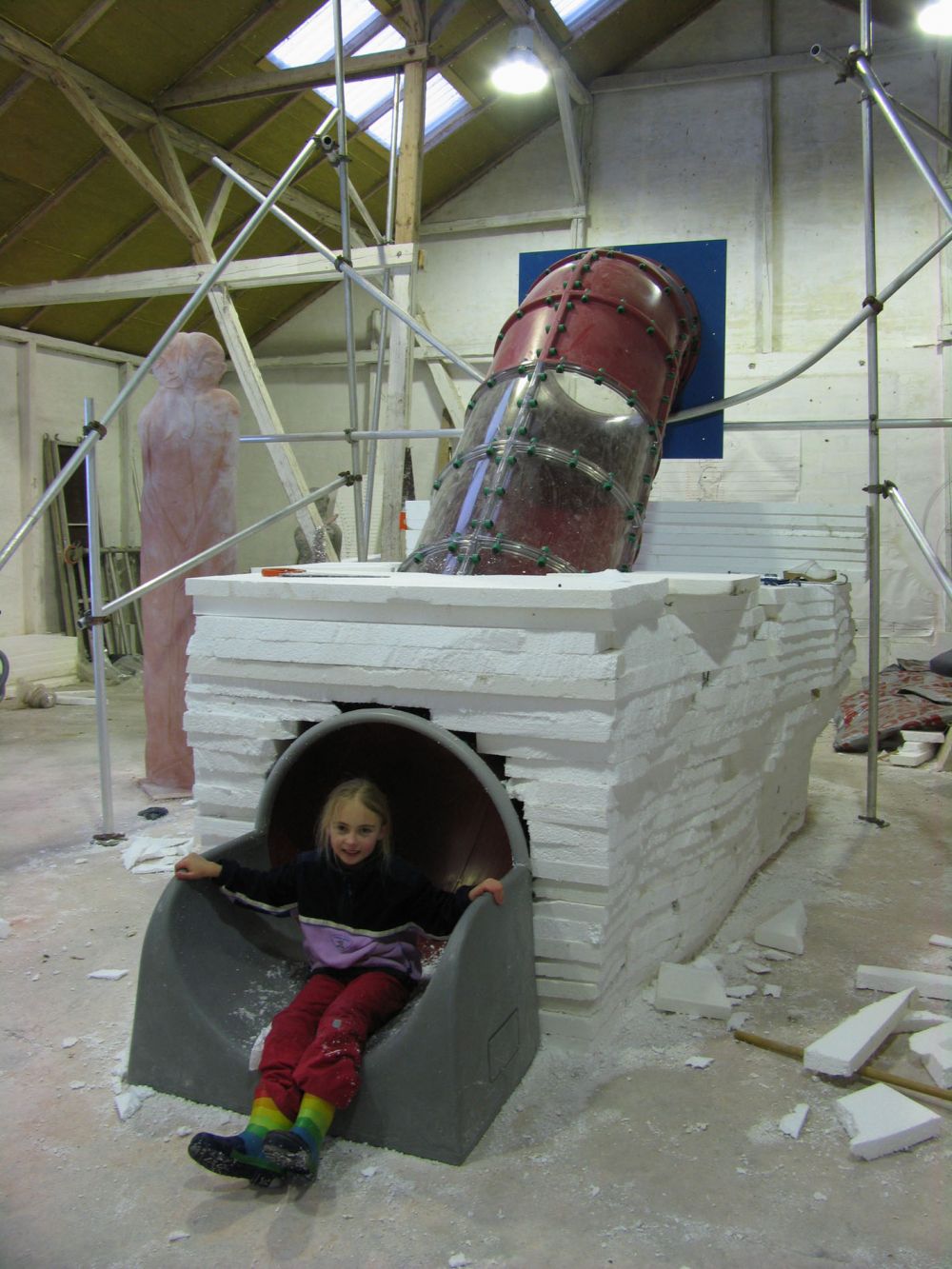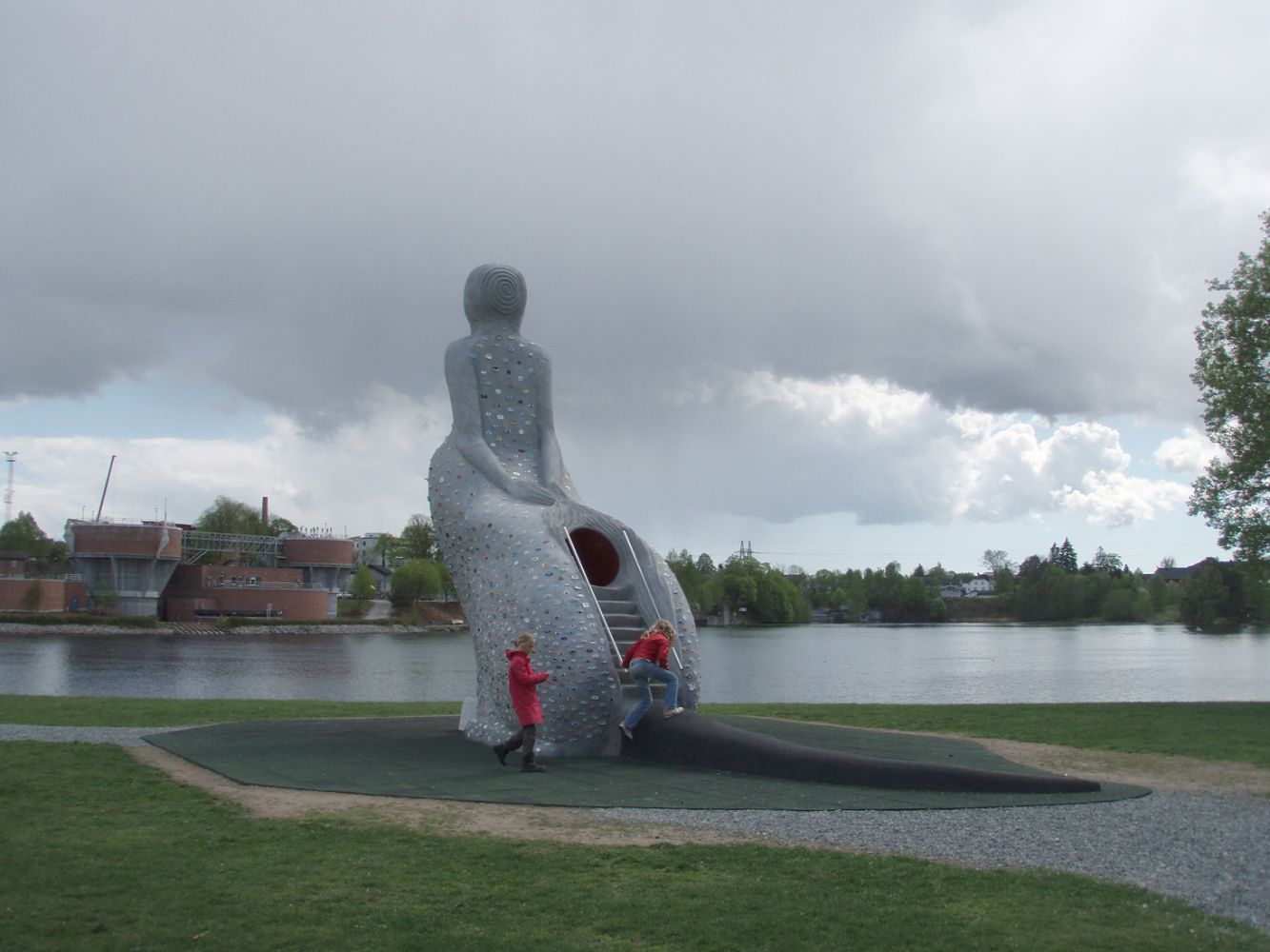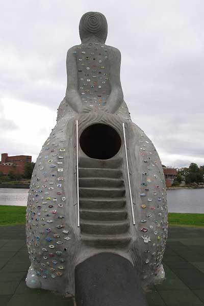 I have also constructed a slide inside her, so that children can climb up on her back, move through her and slide though the rat and what it represents and come out in one piece on the other side. Inside her you can hear Geir Johnson’s composition “The journey between laughter and tears.”