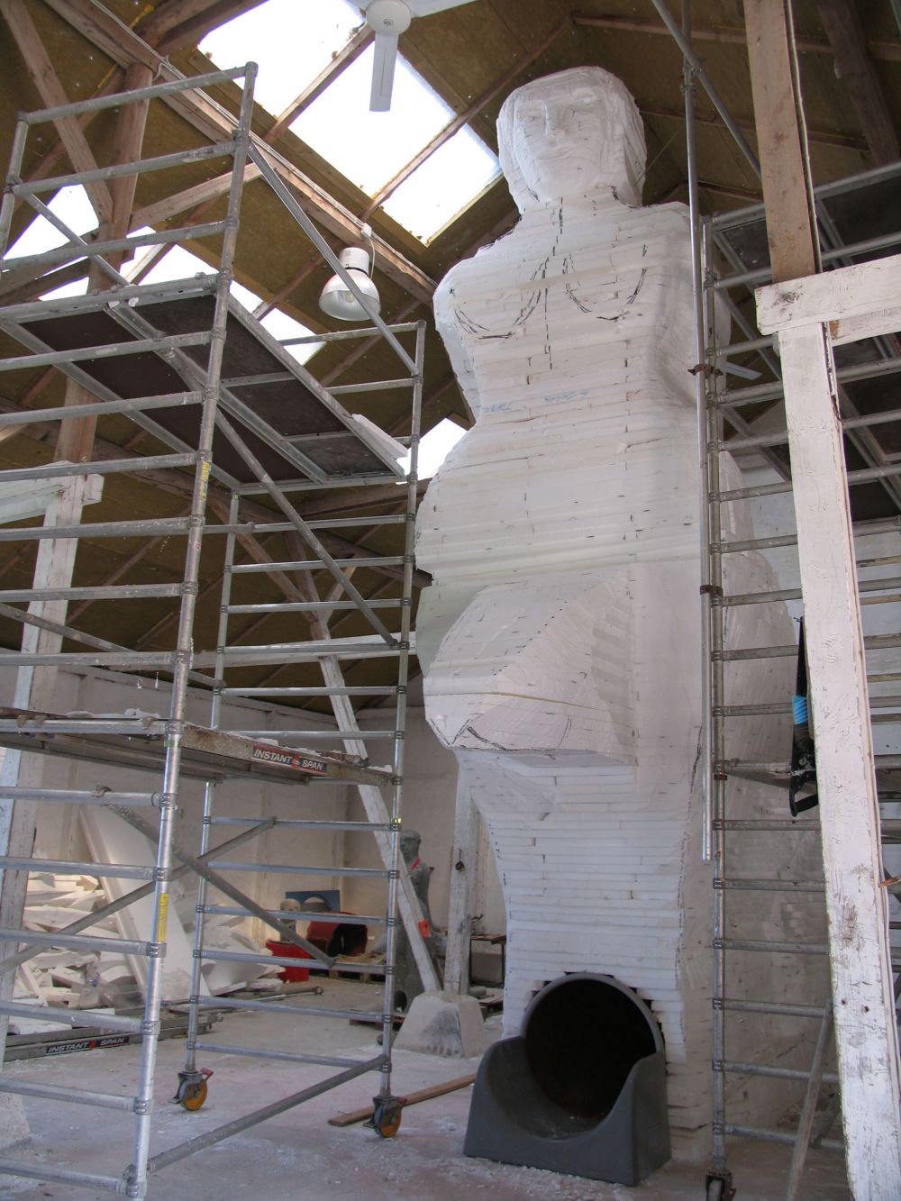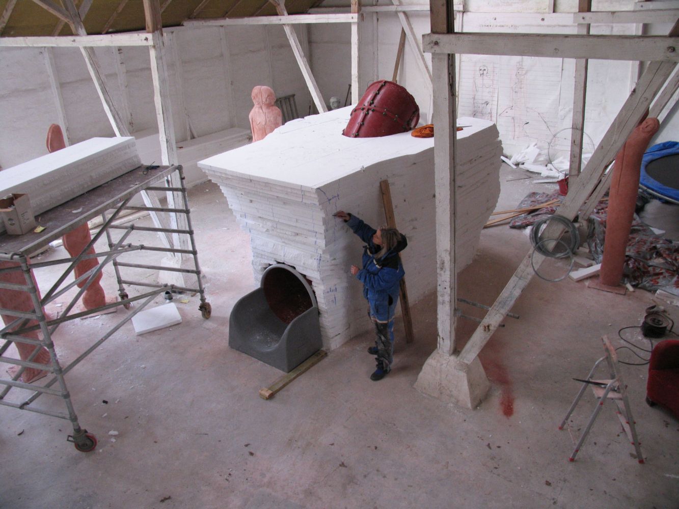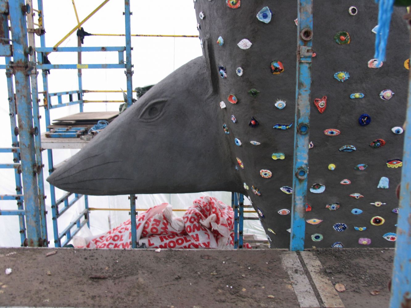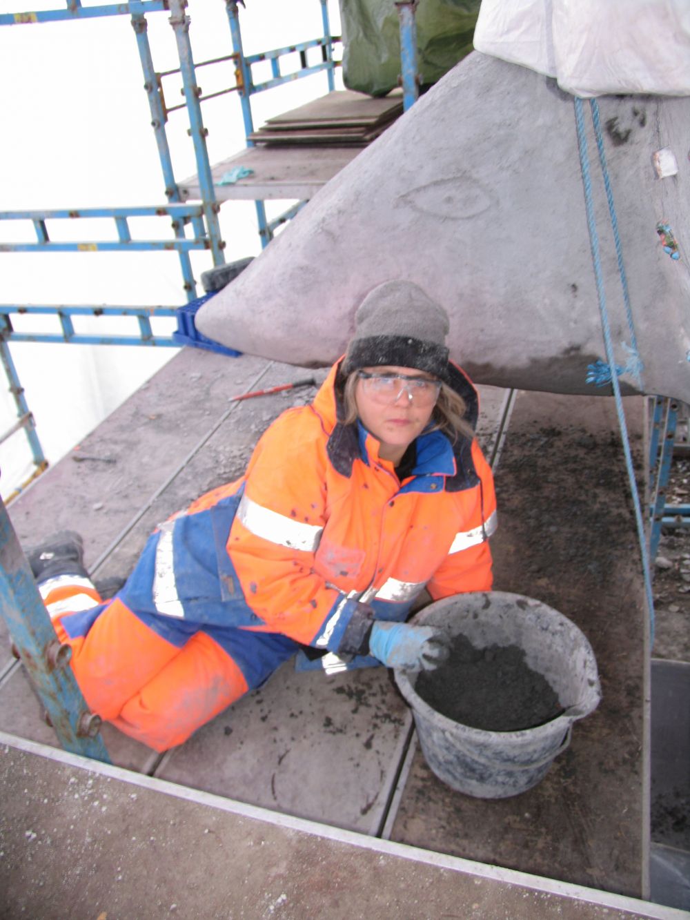 I have also constructed a slide inside her, so that children can climb up on her back, move through her and slide though the rat and what it represents and come out in one piece on the other side. Inside her you can hear Geir Johnson’s composition “The journey between laughter and tears.”