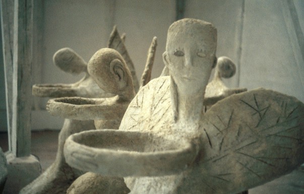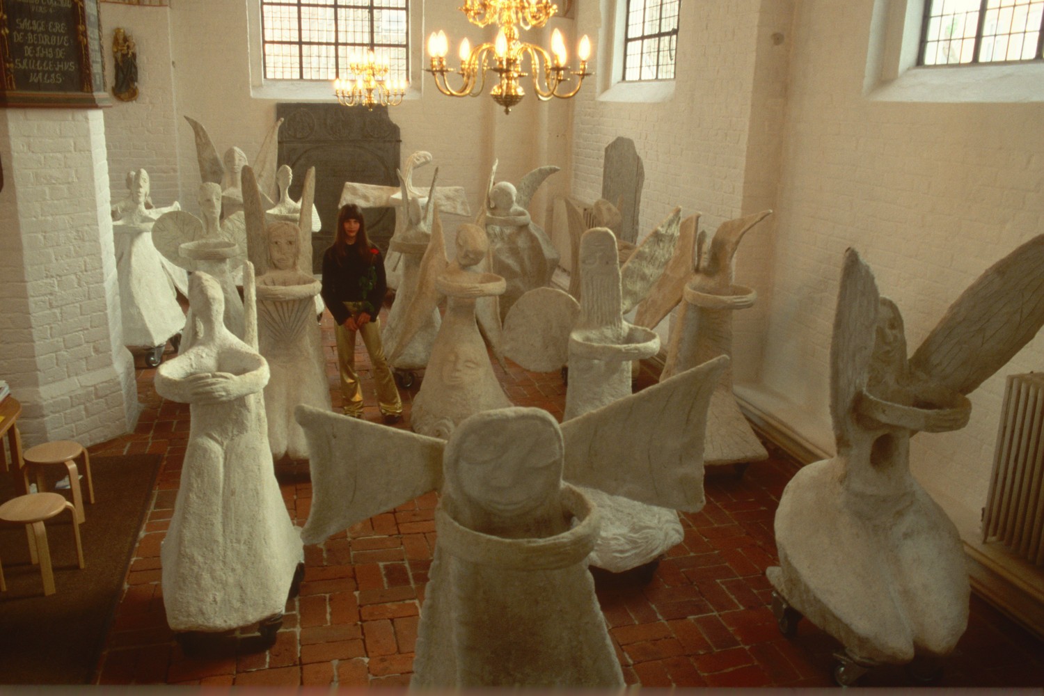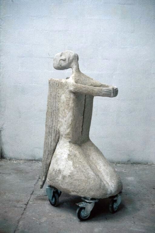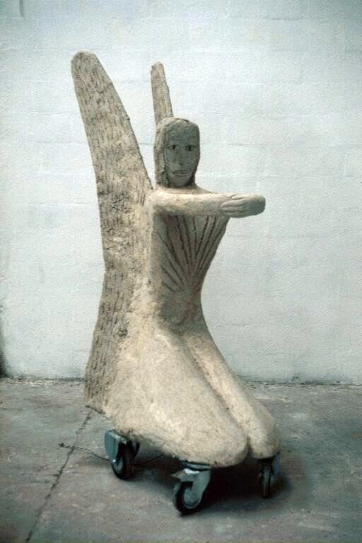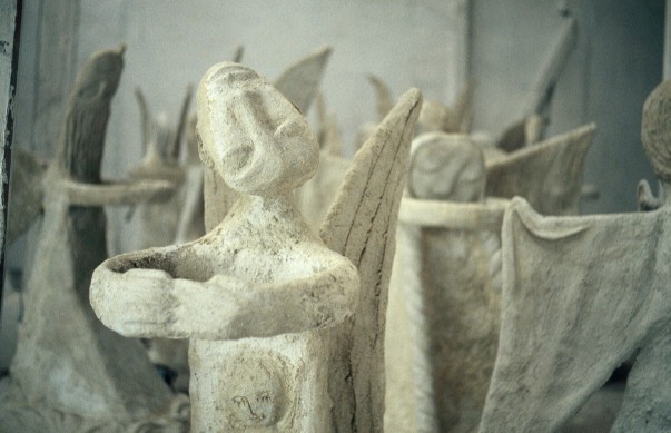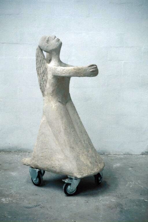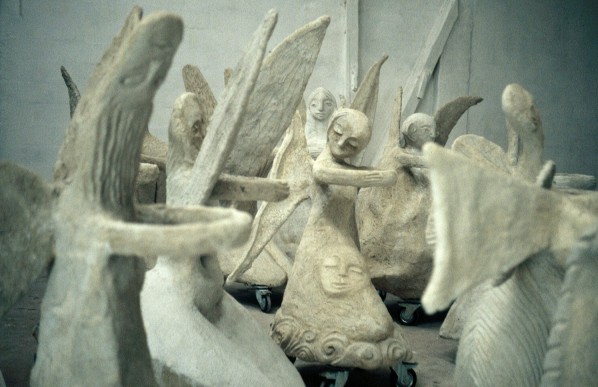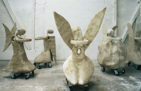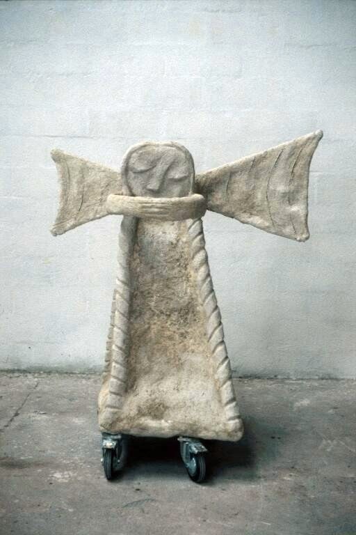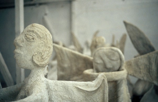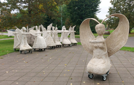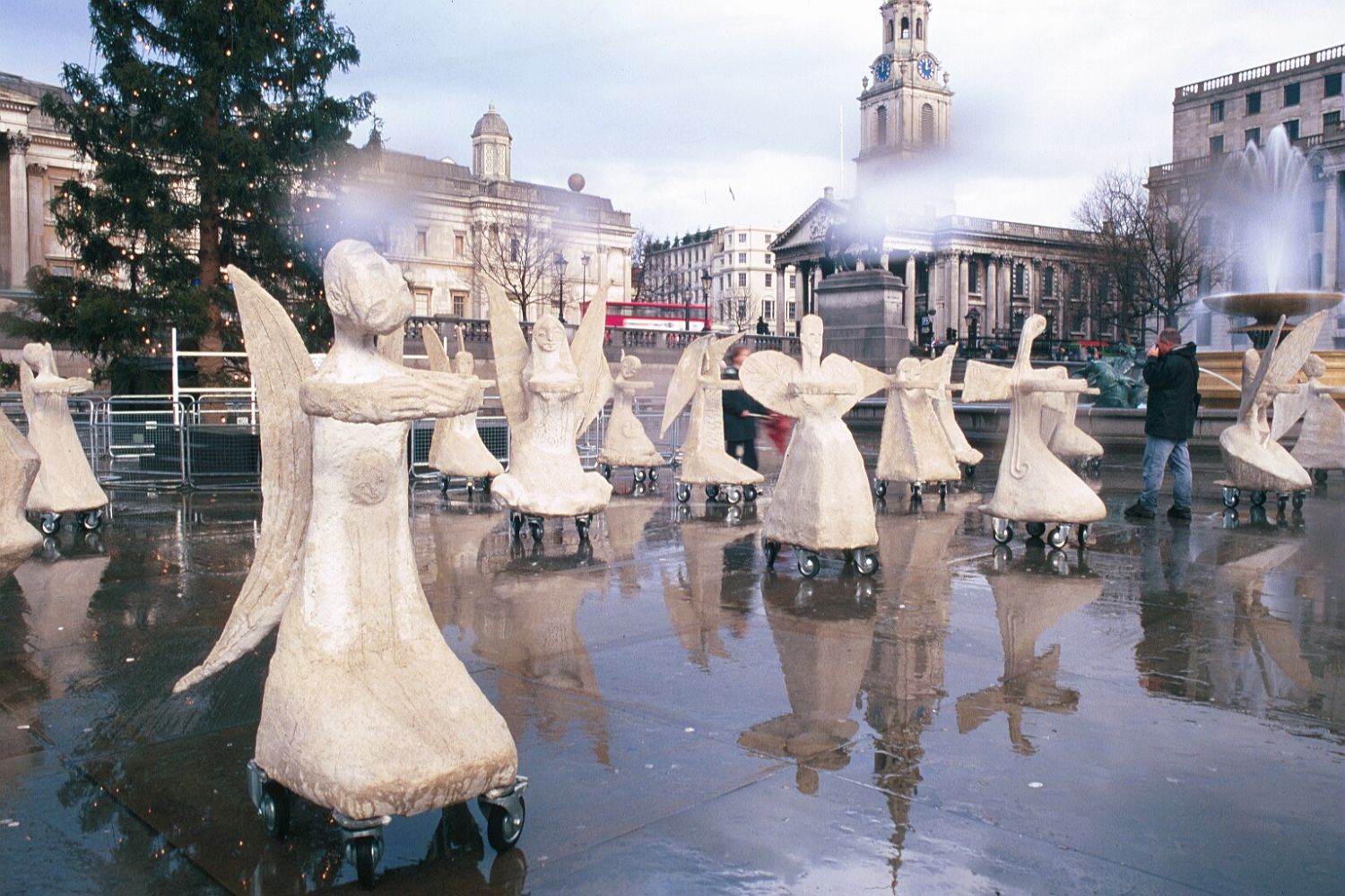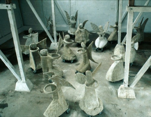 Consisting of 16 angels in human size in cement, modelled over dustbin armatures