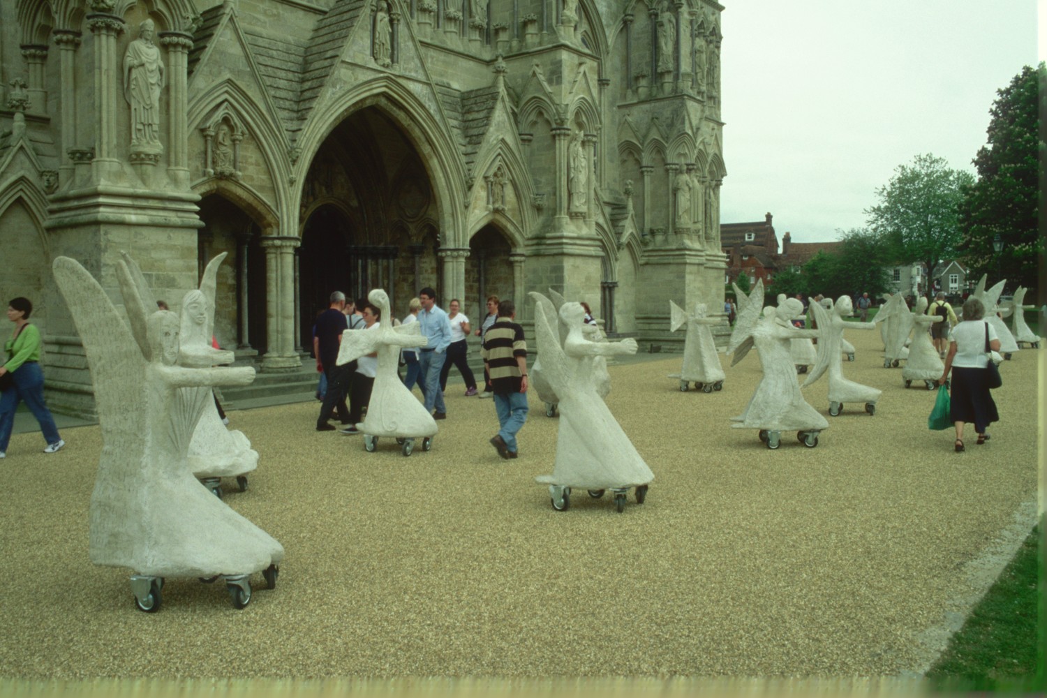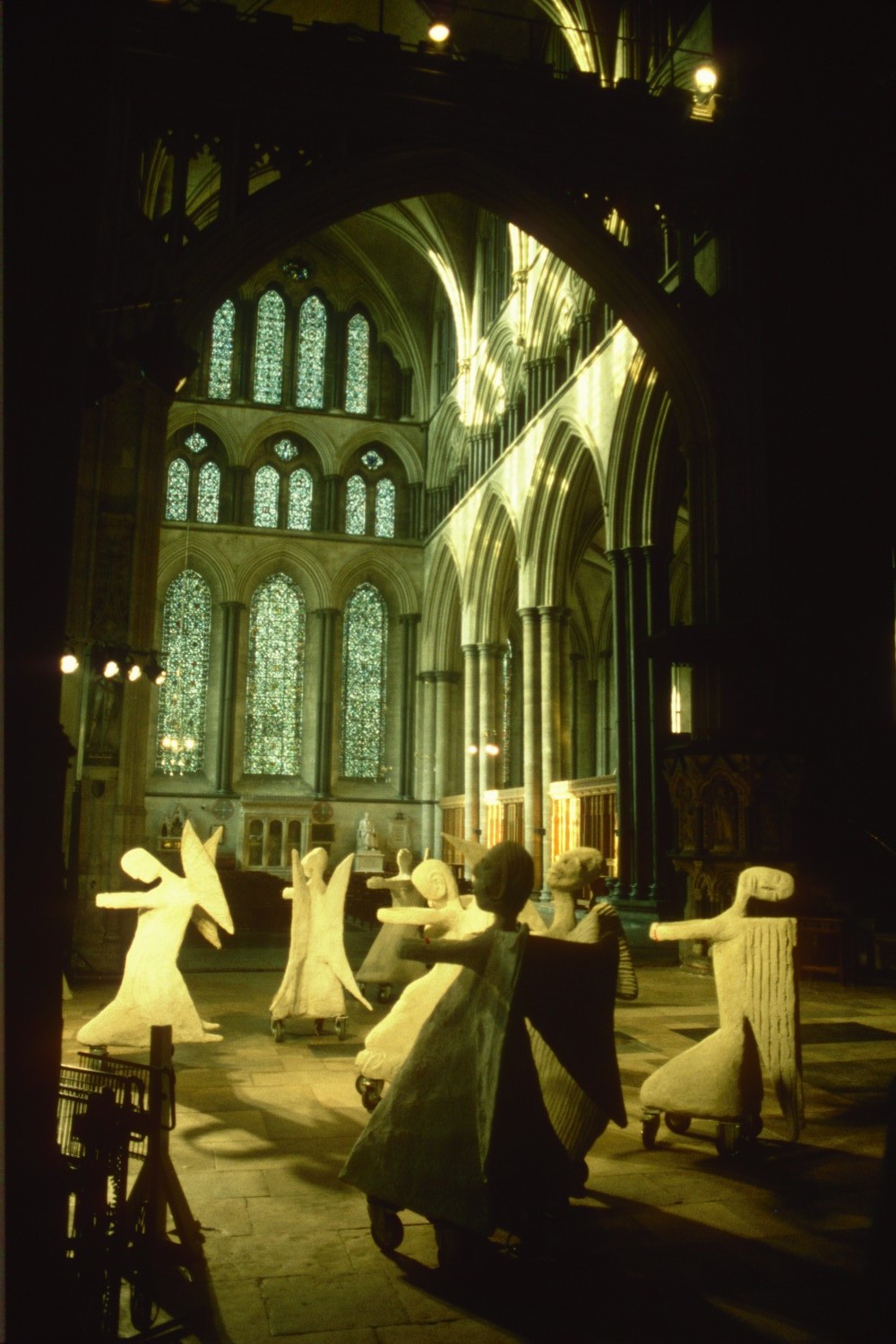 These angels were given wheels so that they could move. Composer Geir Johnson produced sounds that buzzed out of speakers moulded into each angel, based on insects and birds, so that they could create their own sound world.