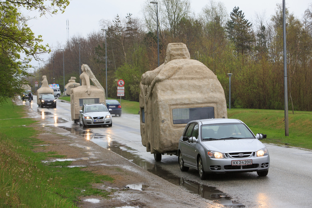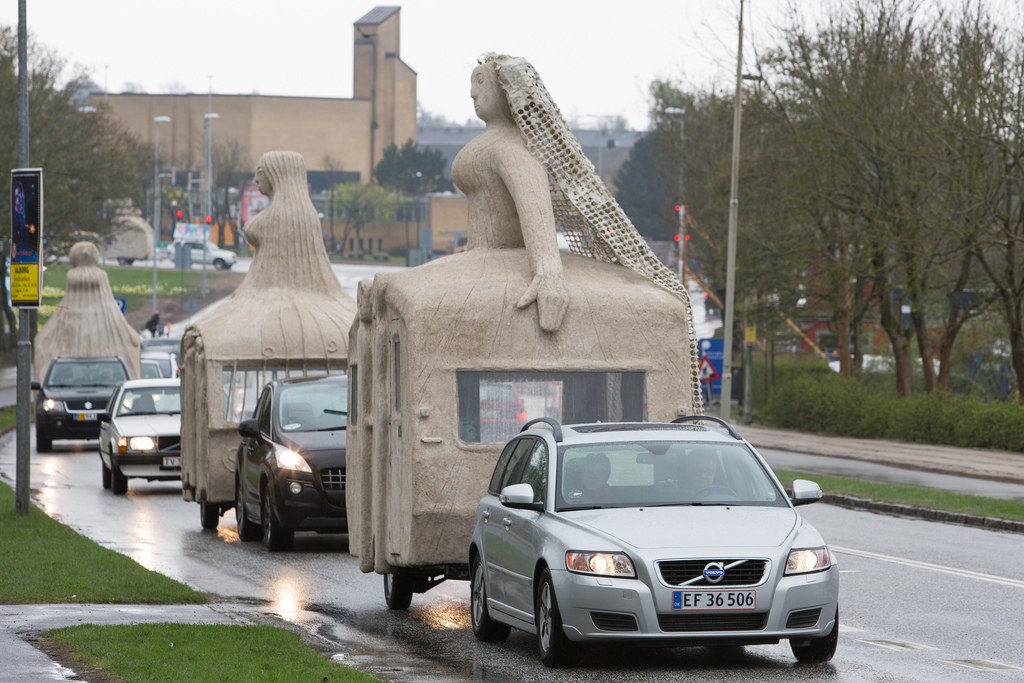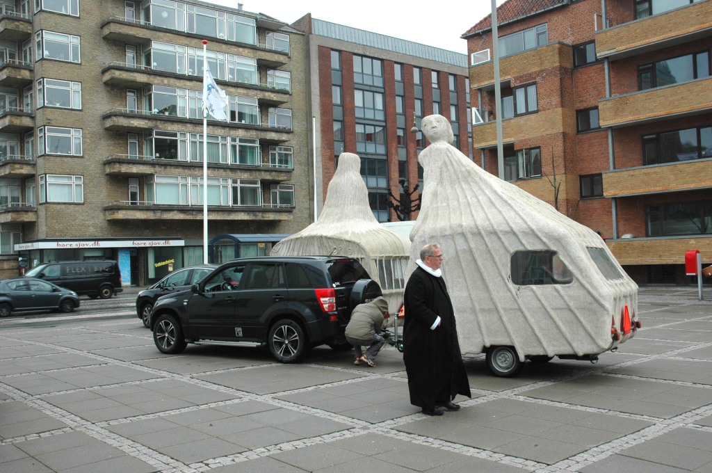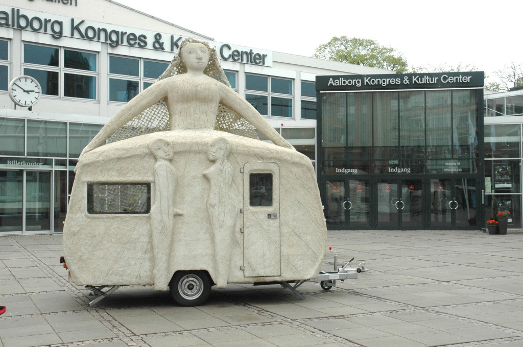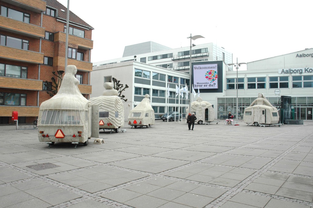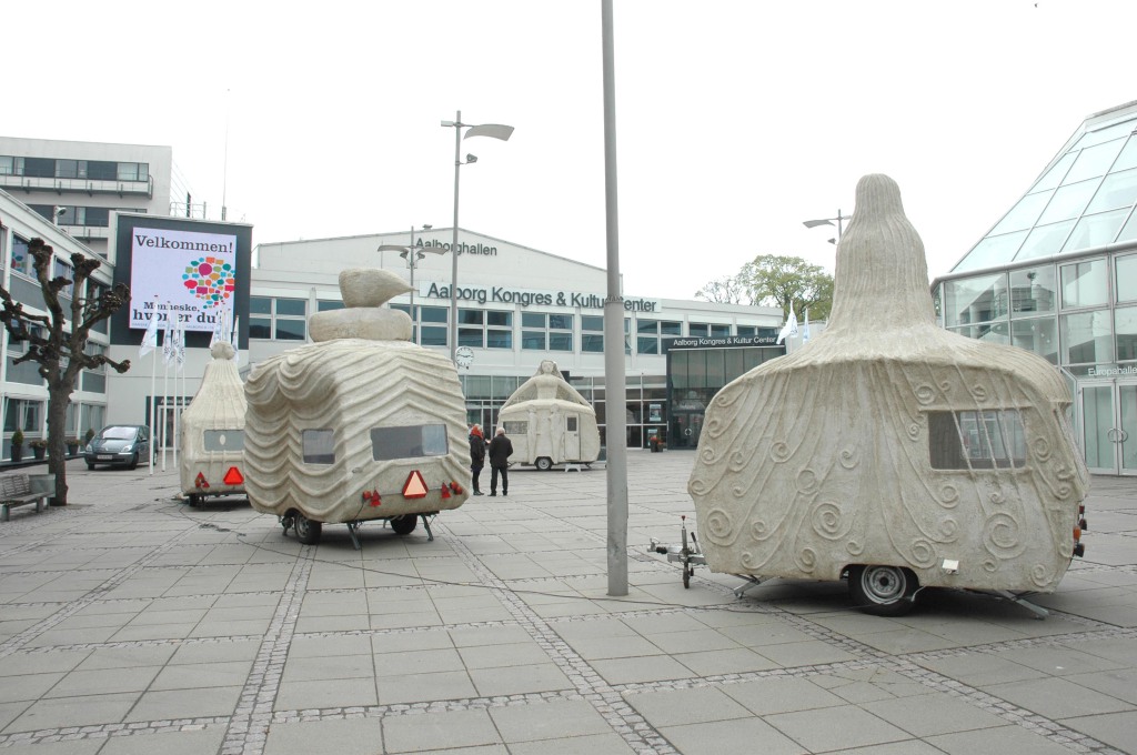 Campingkvinder var opstillet foran Aalborg Kultur og Kongrescenter som en del af Kirkedage i Aalborg