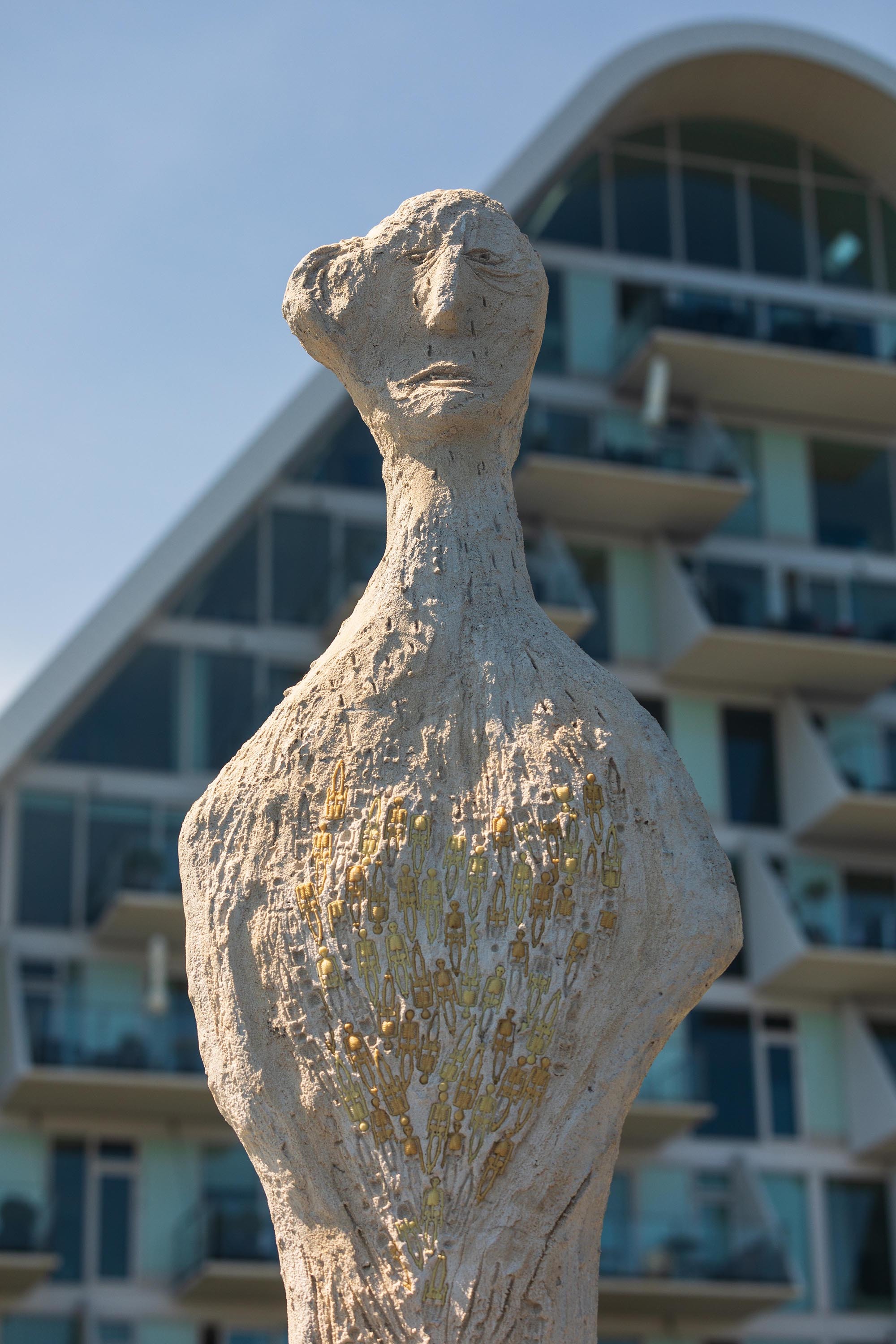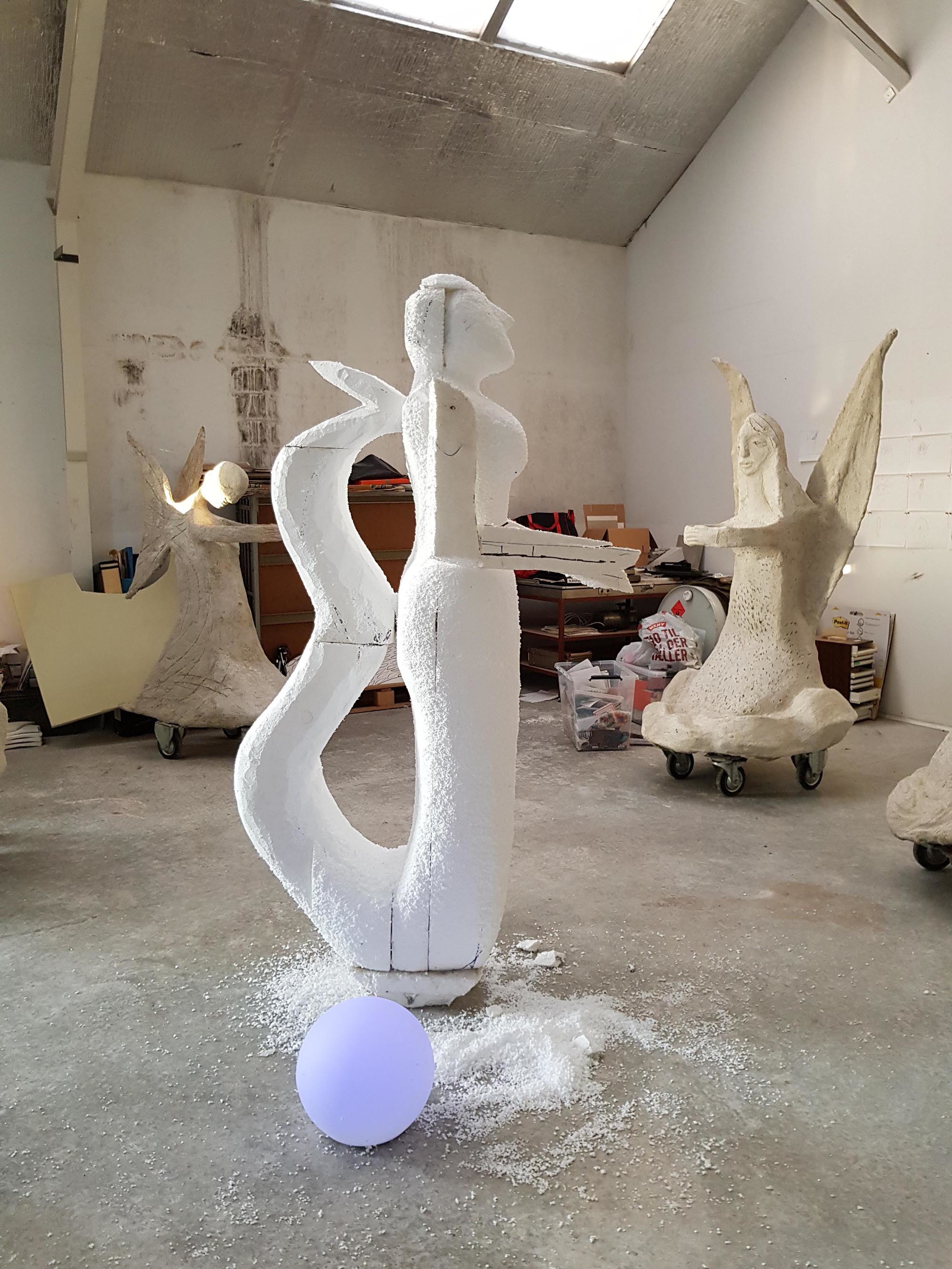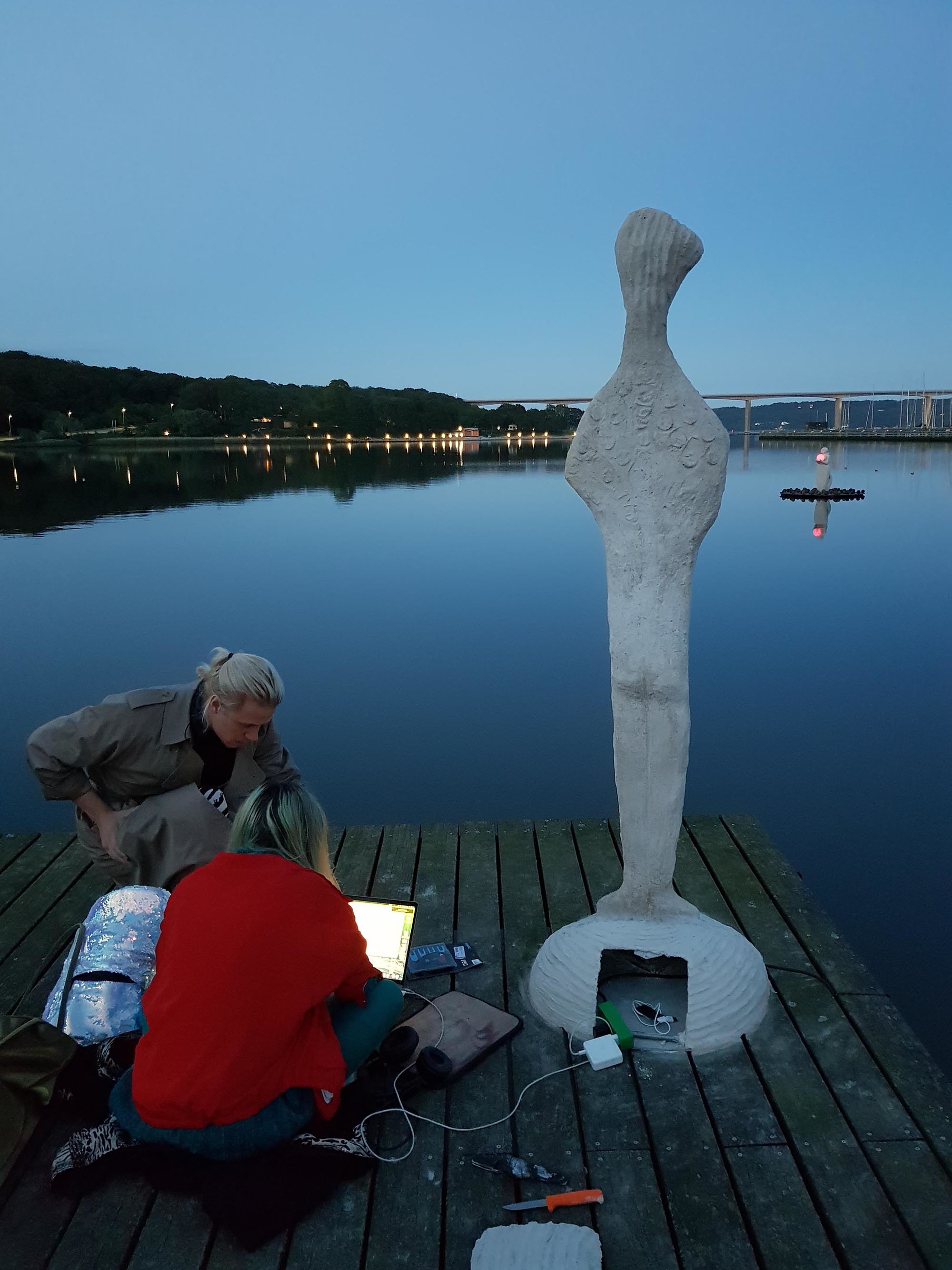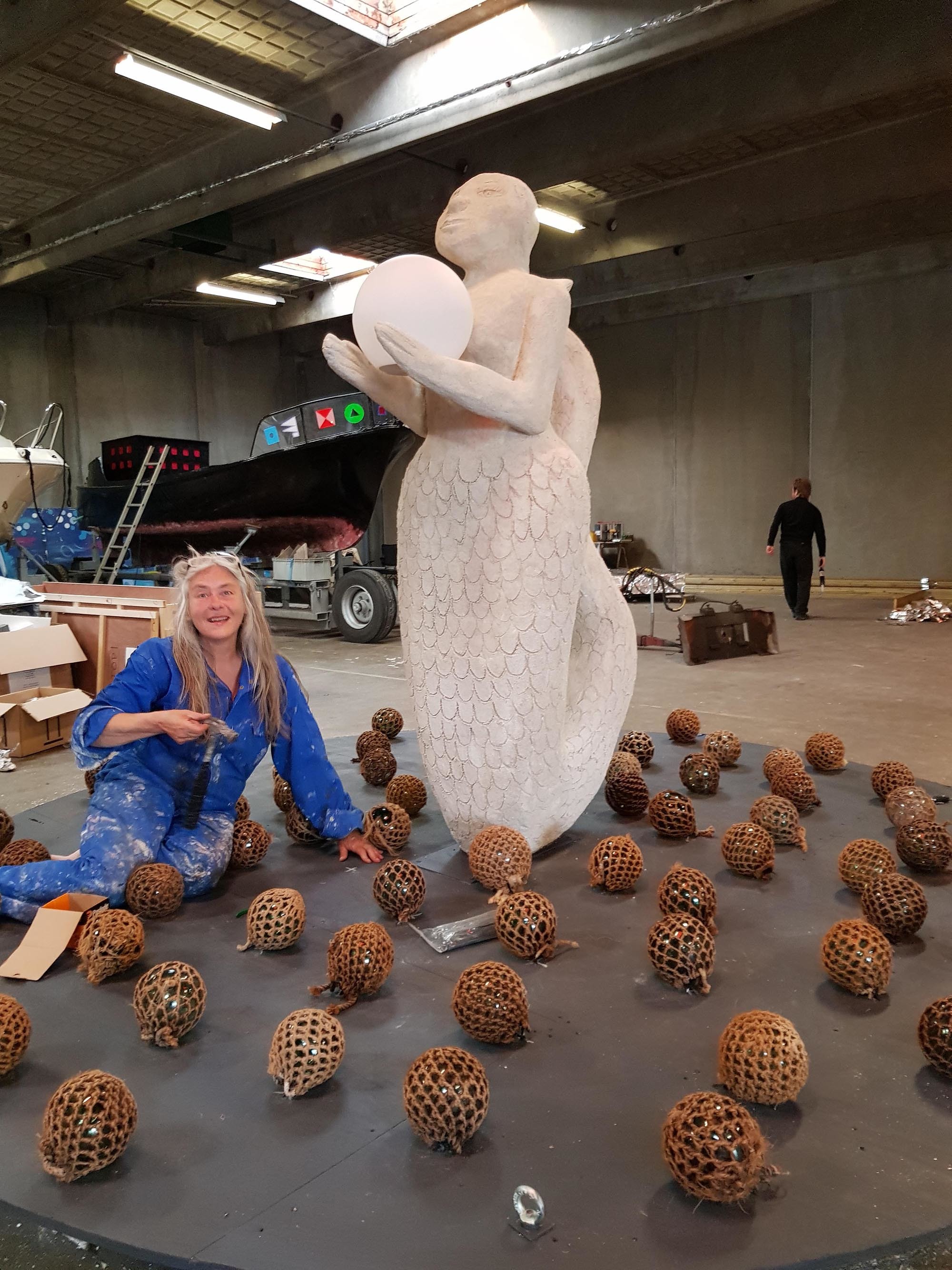 Værkerne tager autobiografisk udgangspunkt i Tereses sygdom, der i en periode gjorde det umuligt for hende at komponere og fik hende til at føle sig som den havfrue, der havde solgt sin stemme og blev fordømt til at leve en tavs og afskåret tilværelse under vandet. To betonskulpturer, en havfrue, der flyder på vandet og en grædende kvindefigur på land, kalder igennem et lydværk imod hinanden og fortæller en følelsesladet historie om de tavse stemmer i vores samfund og håbet om en bedre, mere rummelig verden under havoverfladen." Uddrag fra Kunstkritikk.dk , af Louise Steiwer "Vi har skapt to skulpturer som forholder seg til hverandre, på land og på vannet, Figuren på land ’Gråter skjeletter’, gråter for verden, mens han ser lengselsfullt ut på ’Håpets Heltinne’ i sjøen. Hun er en havfrue, som bærer en lysende klode, mens hun flyter på glasskuler. Halen hennes krøller seg som et evighets symbol. Lydbildene, skapt for hver av dem, gir dem stemmer." Marit Benthe Norheim OM UDSTILLINGEN: