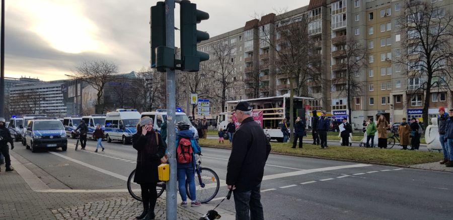 Rullende Engles ankomst til centrum foran Culture Palace i Dresden den 5. februar 2020 Hvor Borgmesteren af Dresden, Dirk Hilburg var med. Foto: Anja Schneider