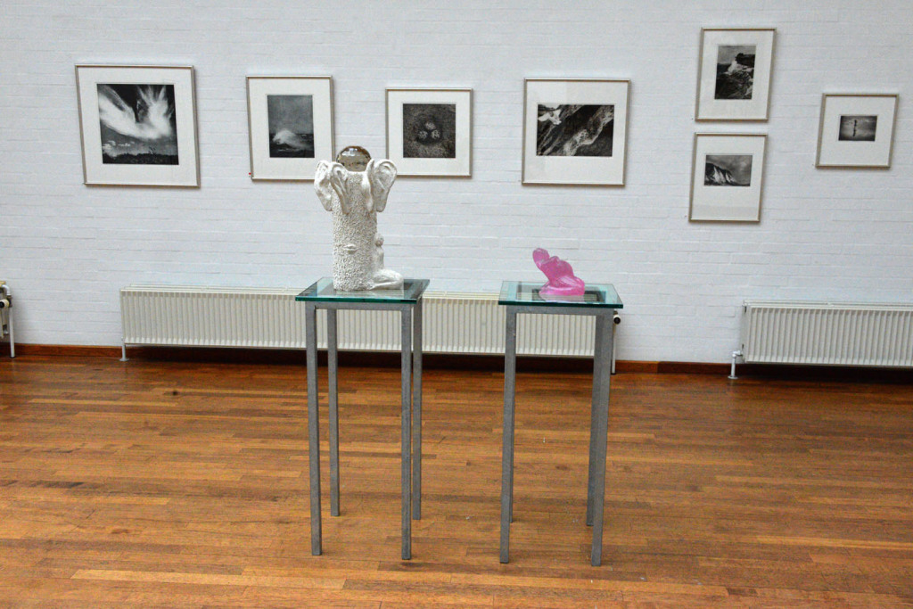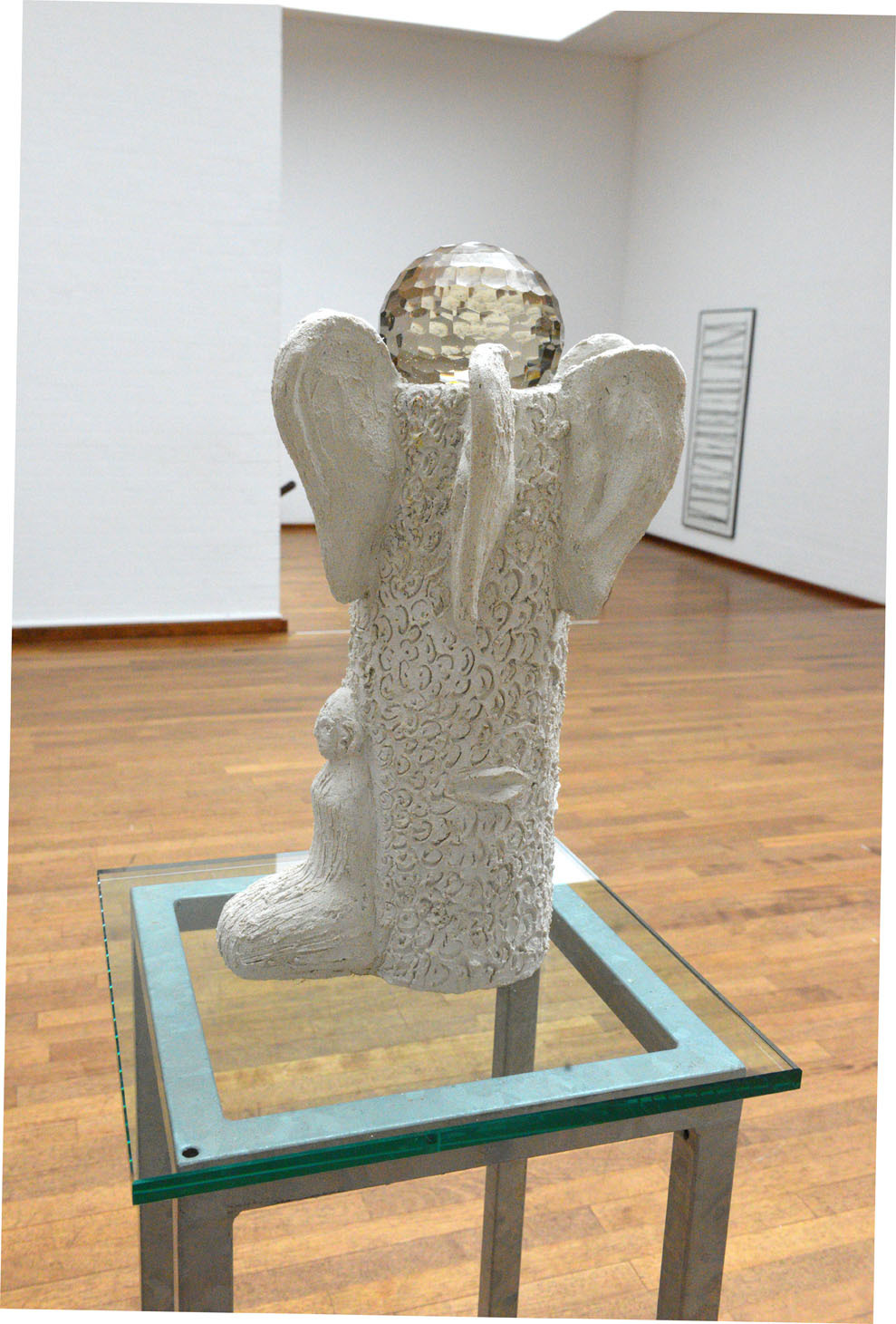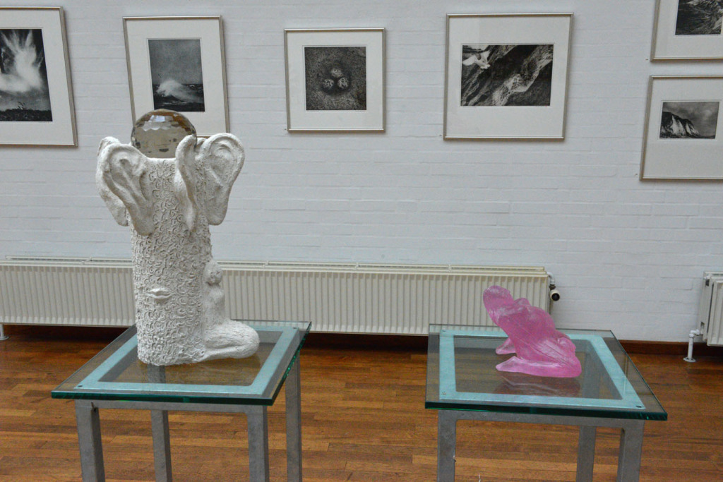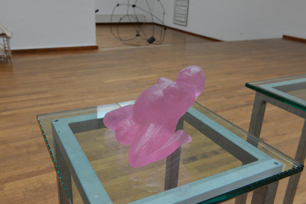 “Fødsel og Lytte Tre En skulptur i to dele”. Beton, stål, voks og glas.