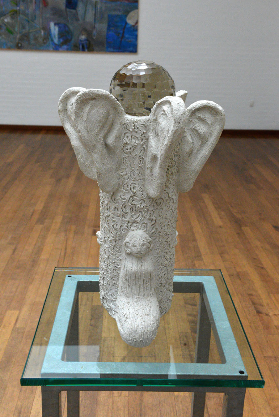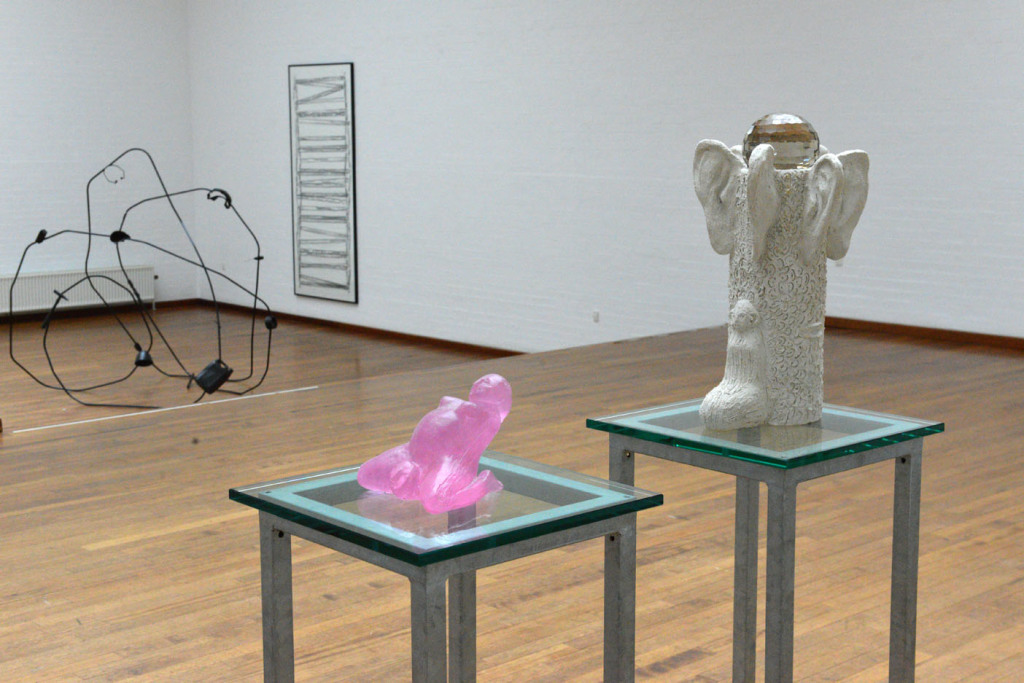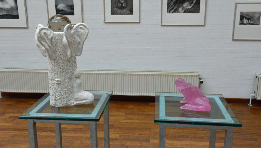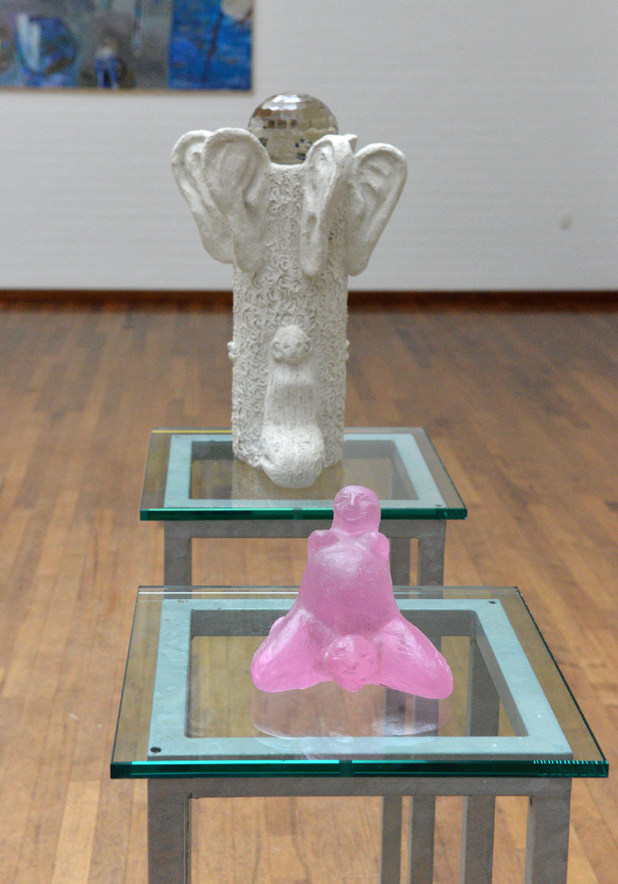 “Fødsel og Lytte Tre En skulptur i to dele”. Beton, stål, voks og glas.
