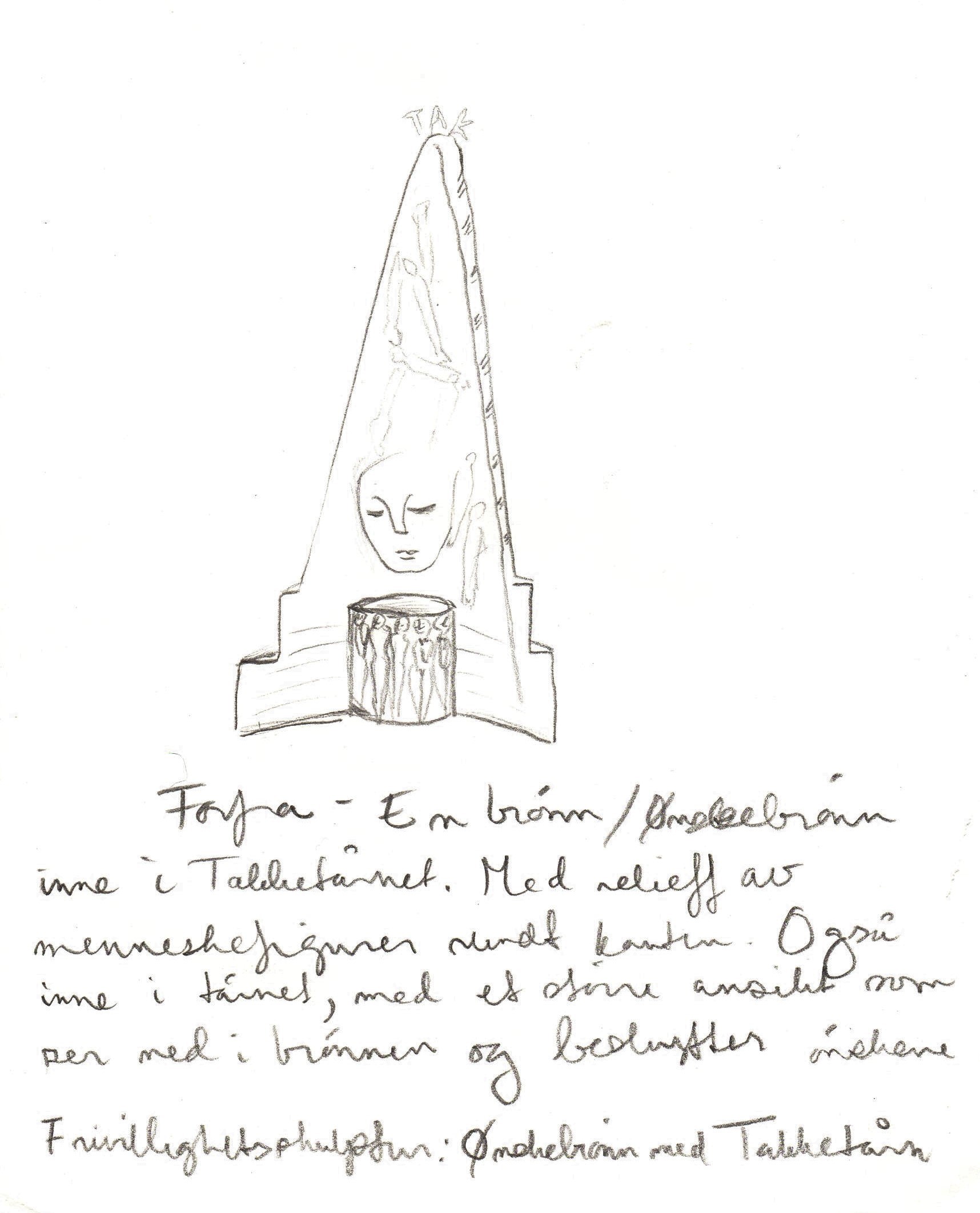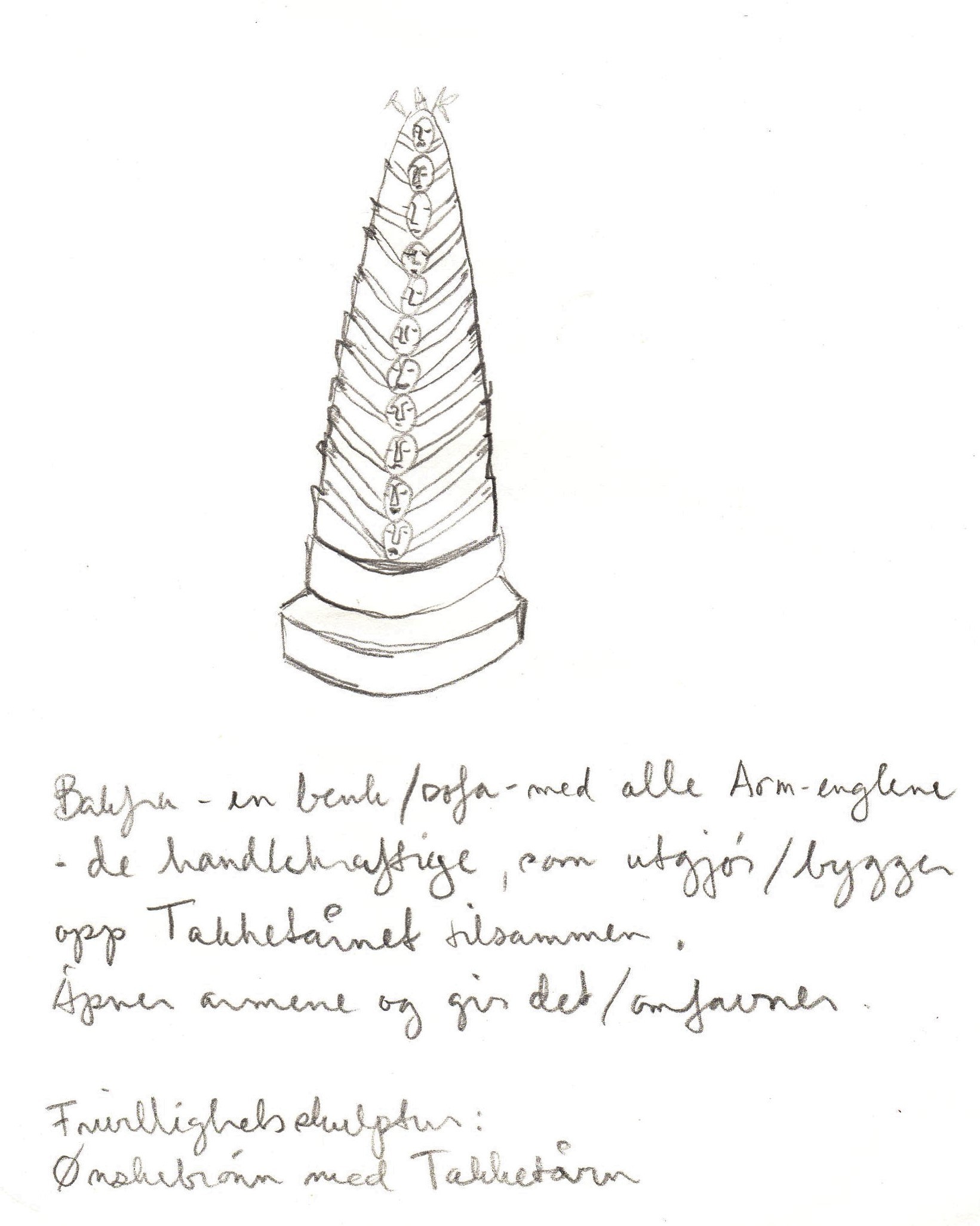 Læs beskrivelsen af En frivillighets skulptur: Med tittelen: Ønskebrønn med Takketårn