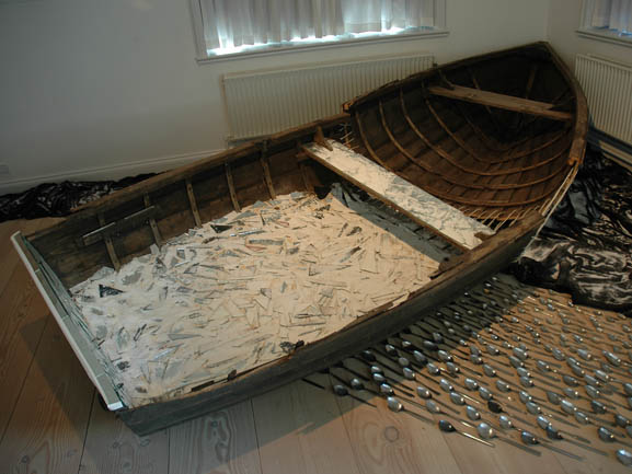 "Vi er alle i samme båd" et samarbejdsprojekt med båden og spejlet som fællesnævner, af Gerda Thune Andersen, Moustafa Al Yassin og Marit Benthe Norheim som deltog med værkerne kvindebåd og campingkvinner